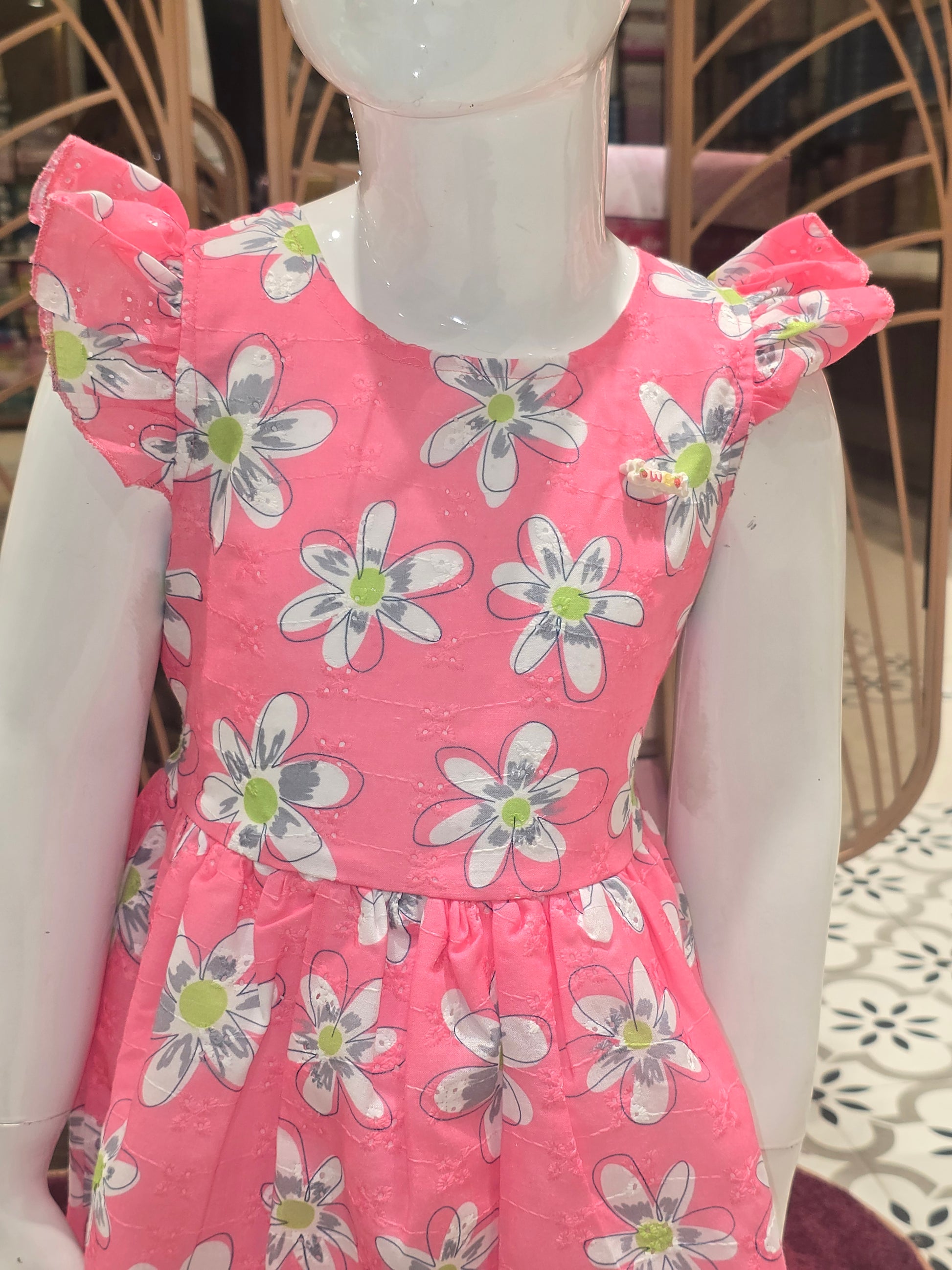 This peach baby frock is crafted from soft acoba cotton, offering breathable comfort with a charming floral printed design. Styled with elegant buff sleeves, it creates a cute and graceful look perfect for everyday wear. Lightweight and easy to carry, this frock is ideal for casual outings, playdates, and special daywear.