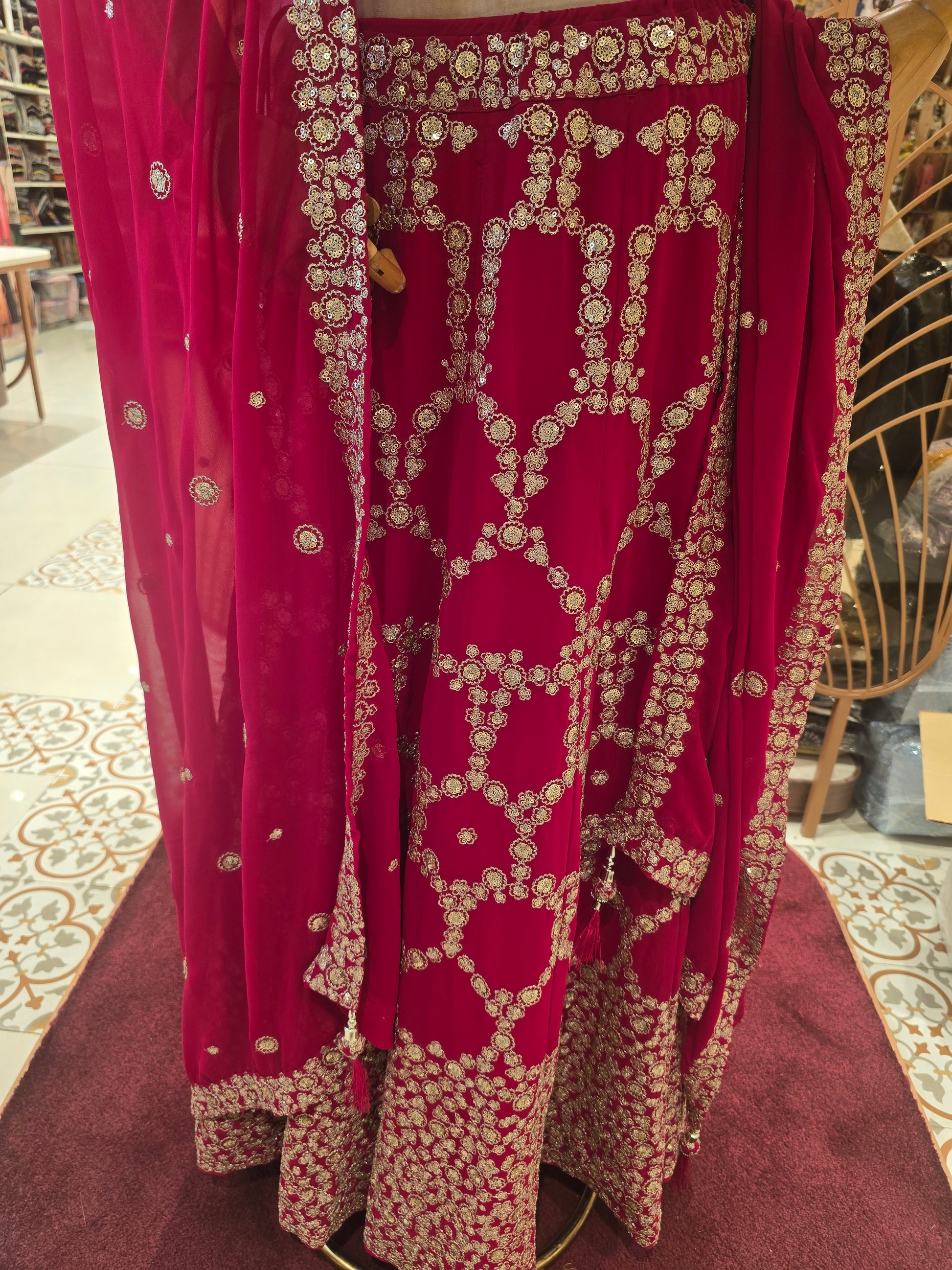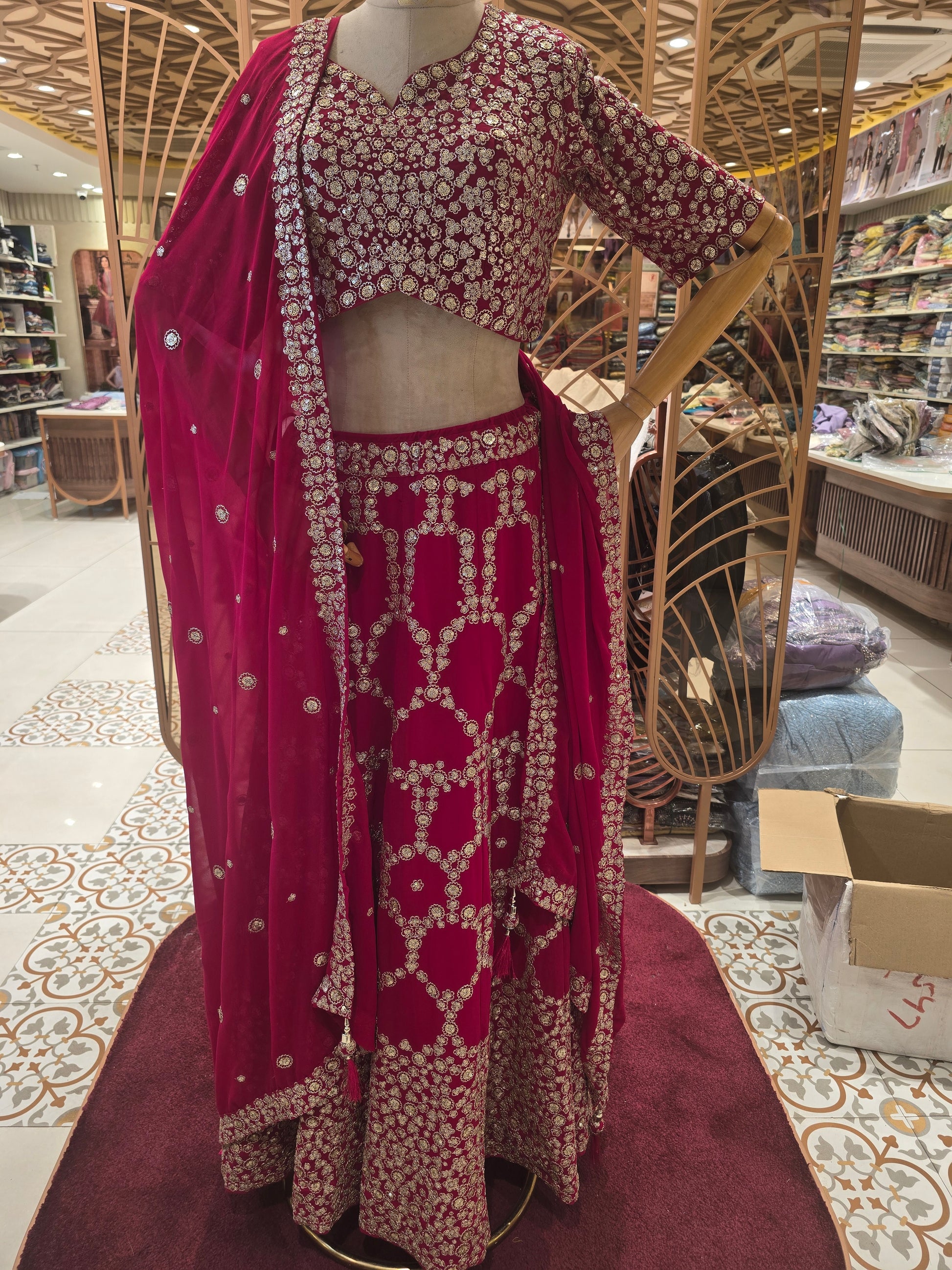 Bridal Georgette Lehenga – Pink Shade with Heavy Sequins Work, Round-Neck Blouse & Matching Dupatta