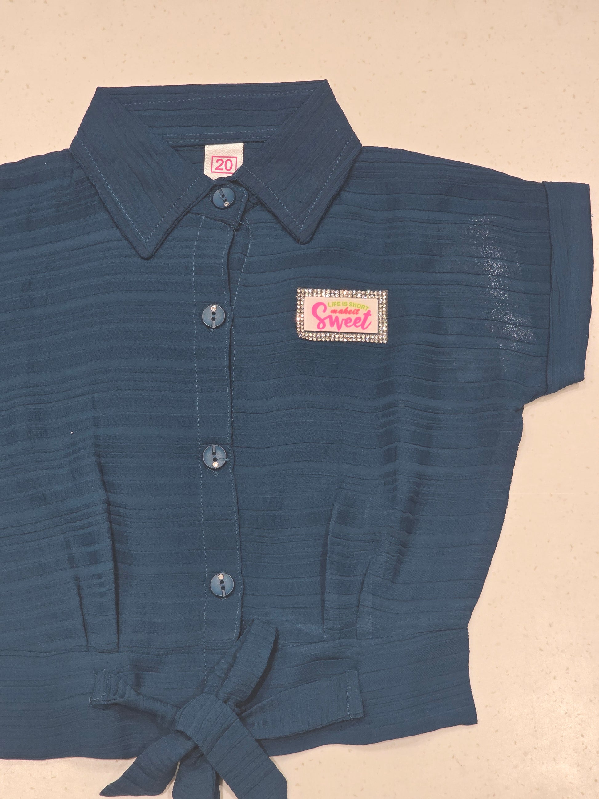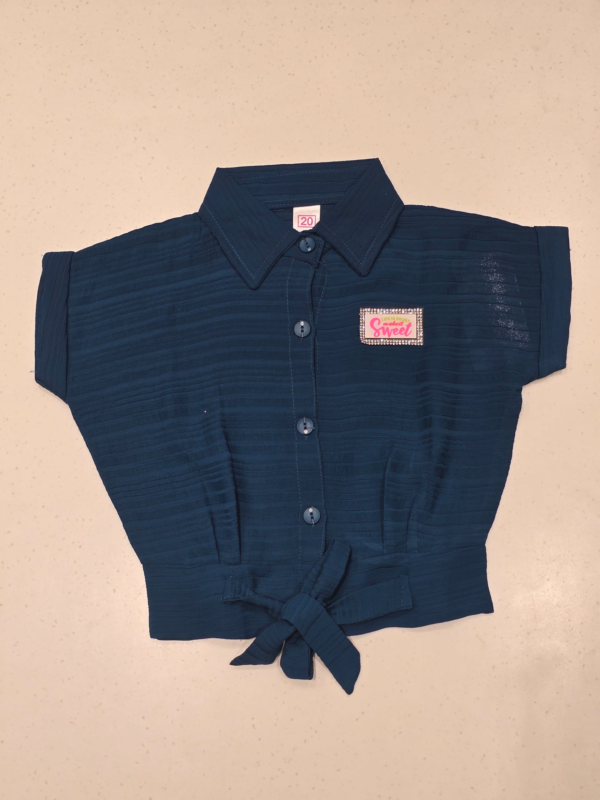 This teal blue chiffon top offers a light, airy feel with an elegant party wear appeal. Designed with a stylish tie detail, it adds a graceful touch while keeping the look playful and comfortable. The soft flowy fabric makes it suitable for festive occasions, celebrations, and everyday styling. A refined choice that blends modern charm with ethnic-inspired fashion.