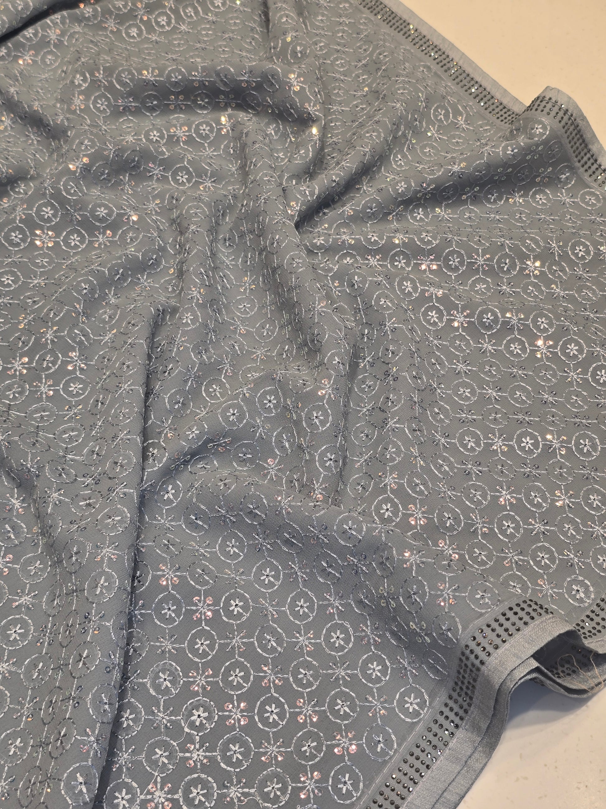 Chiffon saree with sequence and embroidery work, stone work Border | Party wear