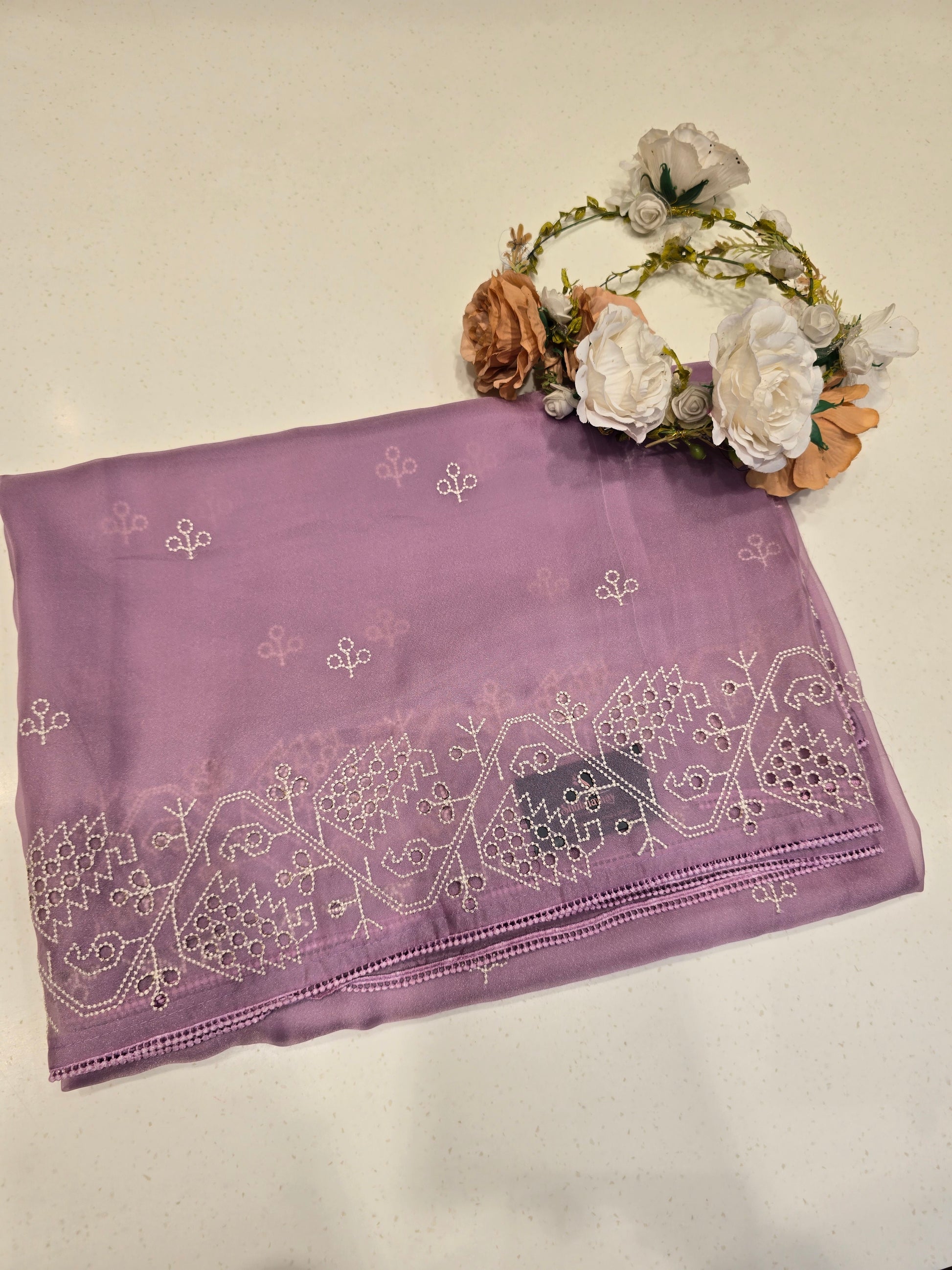 Material composition: Class tissue with embroidery cutt work