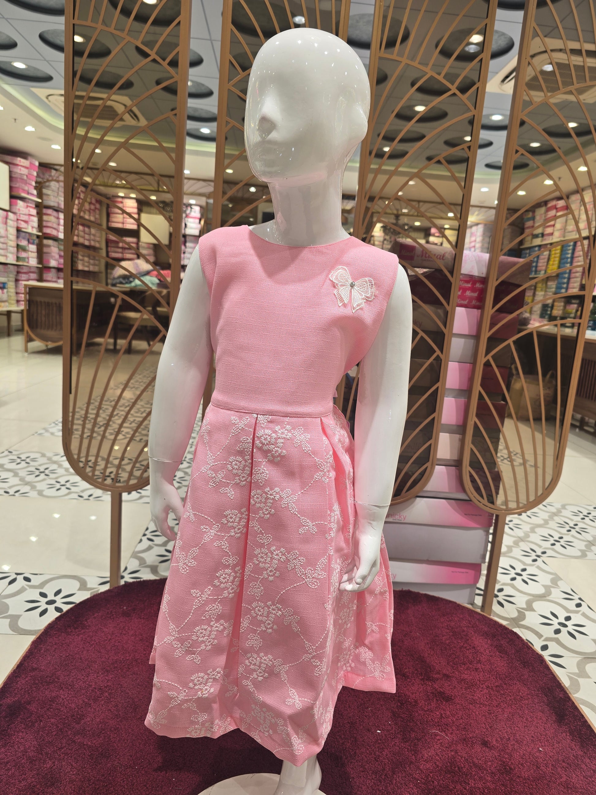 Crafted in soft cotton fabric, this baby pink frock features charming white rubber prints that add a playful and modern touch. The sleeveless design keeps it light and comfortable, perfect for active days. Breathable and gentle on the skin, it is ideal for casual outings and everyday wear across seasons. A sweet one-piece outfit designed for comfort and cheerful styling.