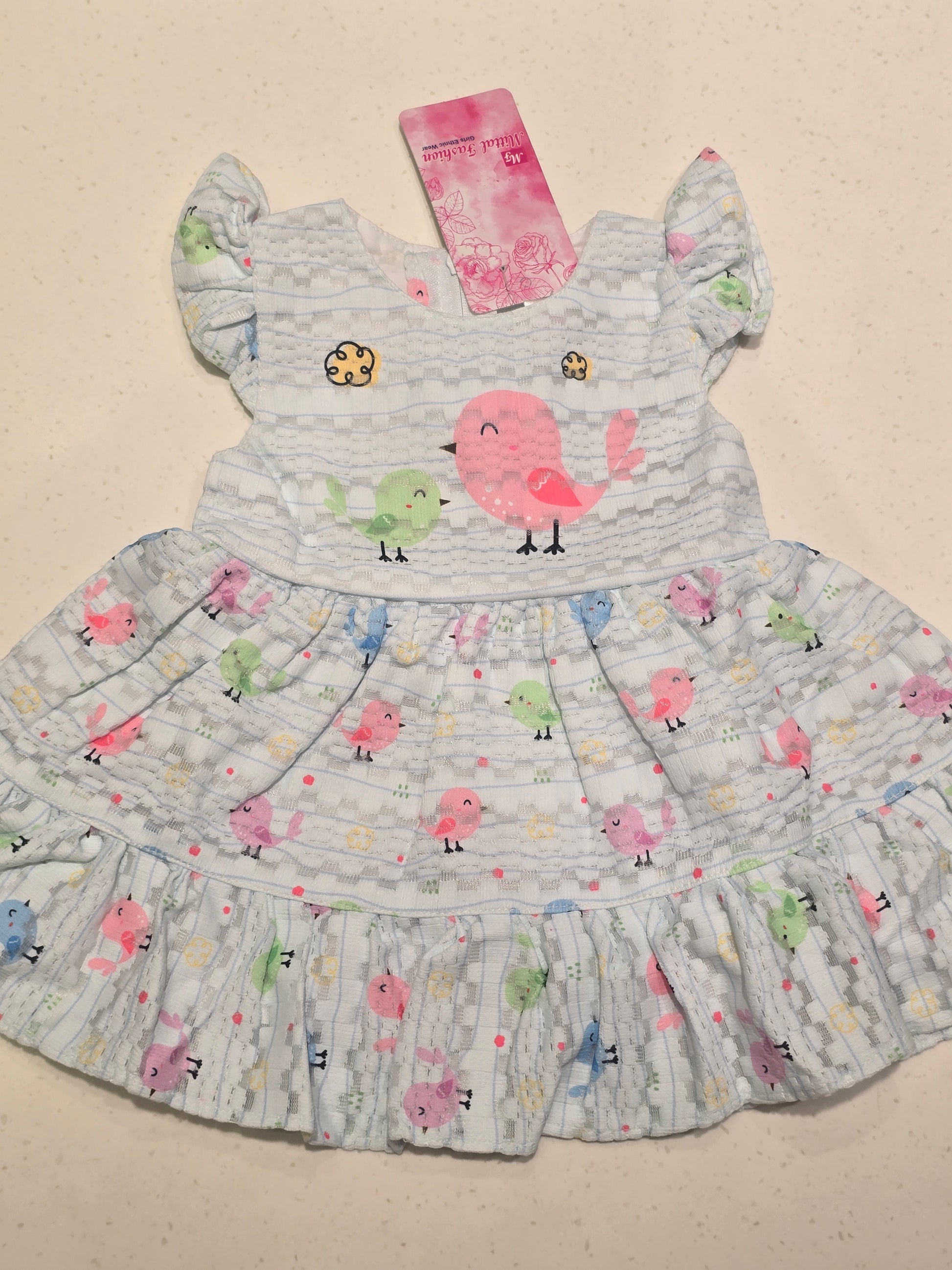 Crafted in soft cotton fabric, this light blue baby frock offers a gentle and breathable feel perfect for delicate skin. The buff sleeves add a charming volume, creating an adorable and graceful silhouette. Lightweight and comfortable, it is ideal for daily wear, outings, and special little moments across seasons. A sweet and stylish outfit designed for all-day ease and comfort.