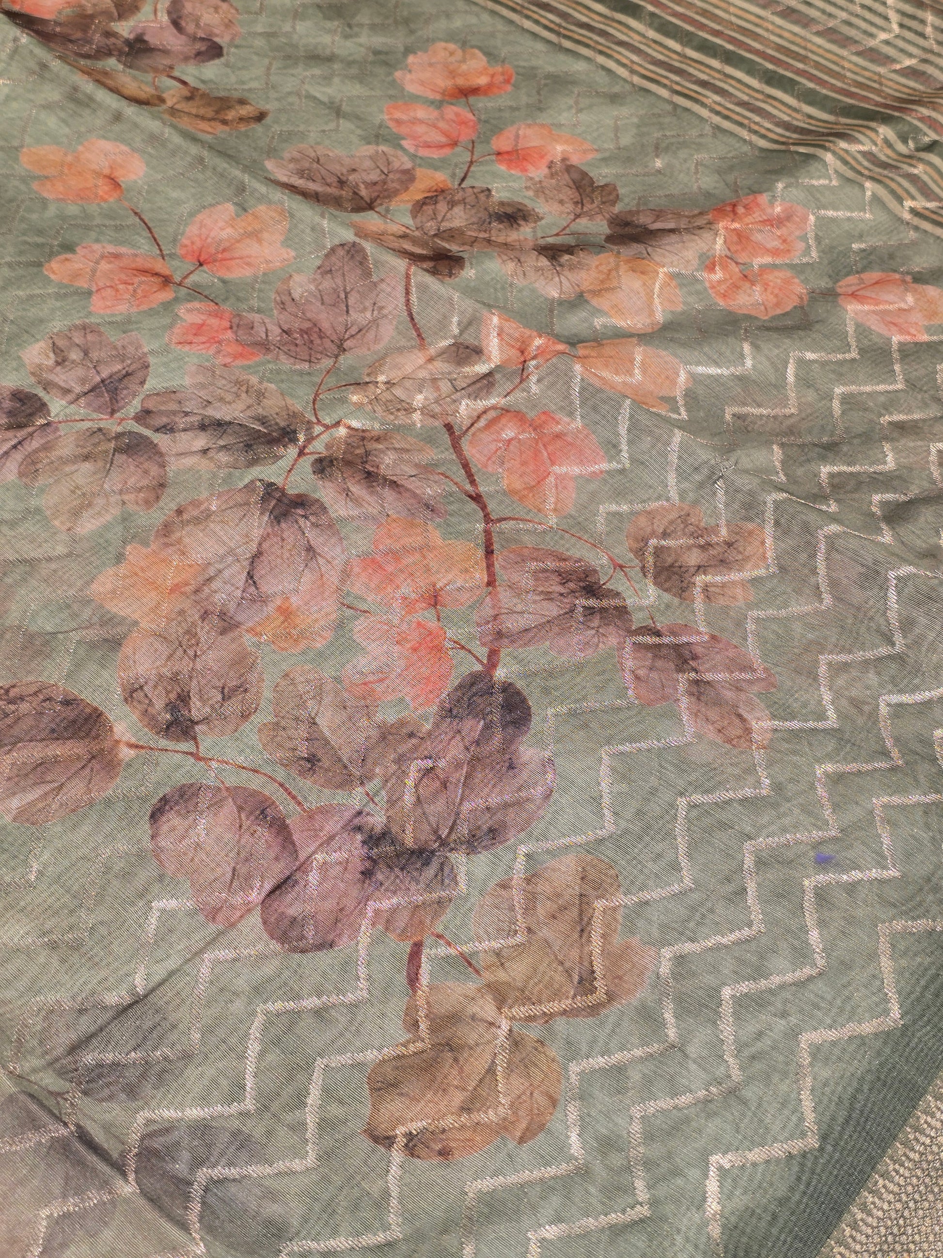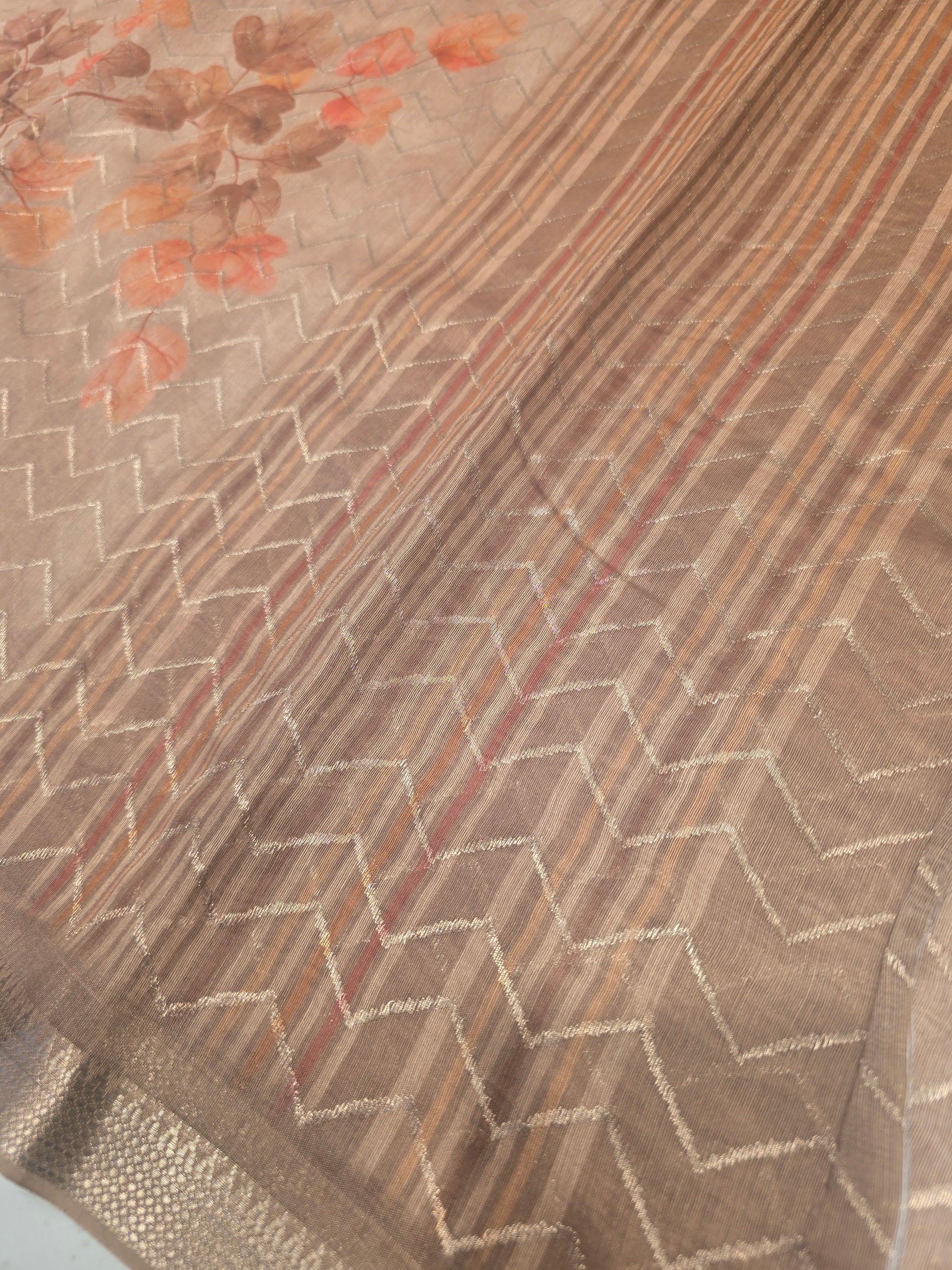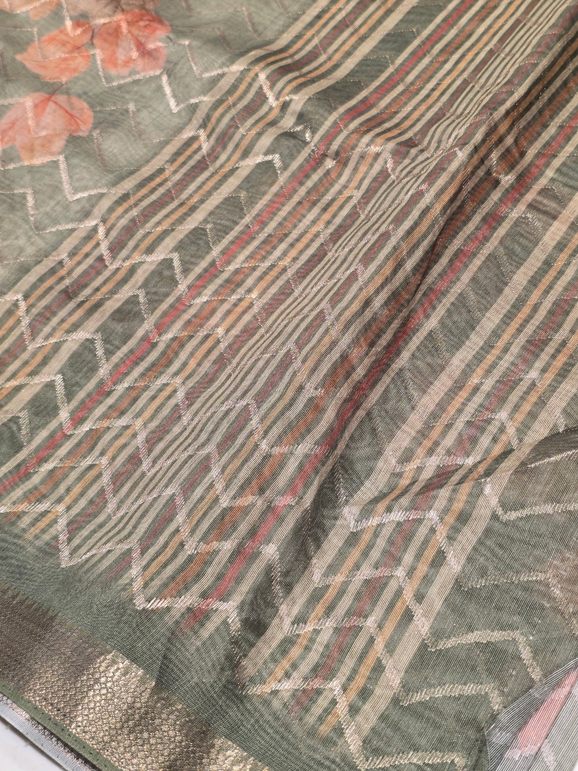 This soft Cotton Lining Printed Saree features beautiful floral prints combined with subtle zigzag horizontal lines across the body. The design gives a fresh and modern appeal while maintaining the classic charm of cotton. Comes with a matching blouse piece.