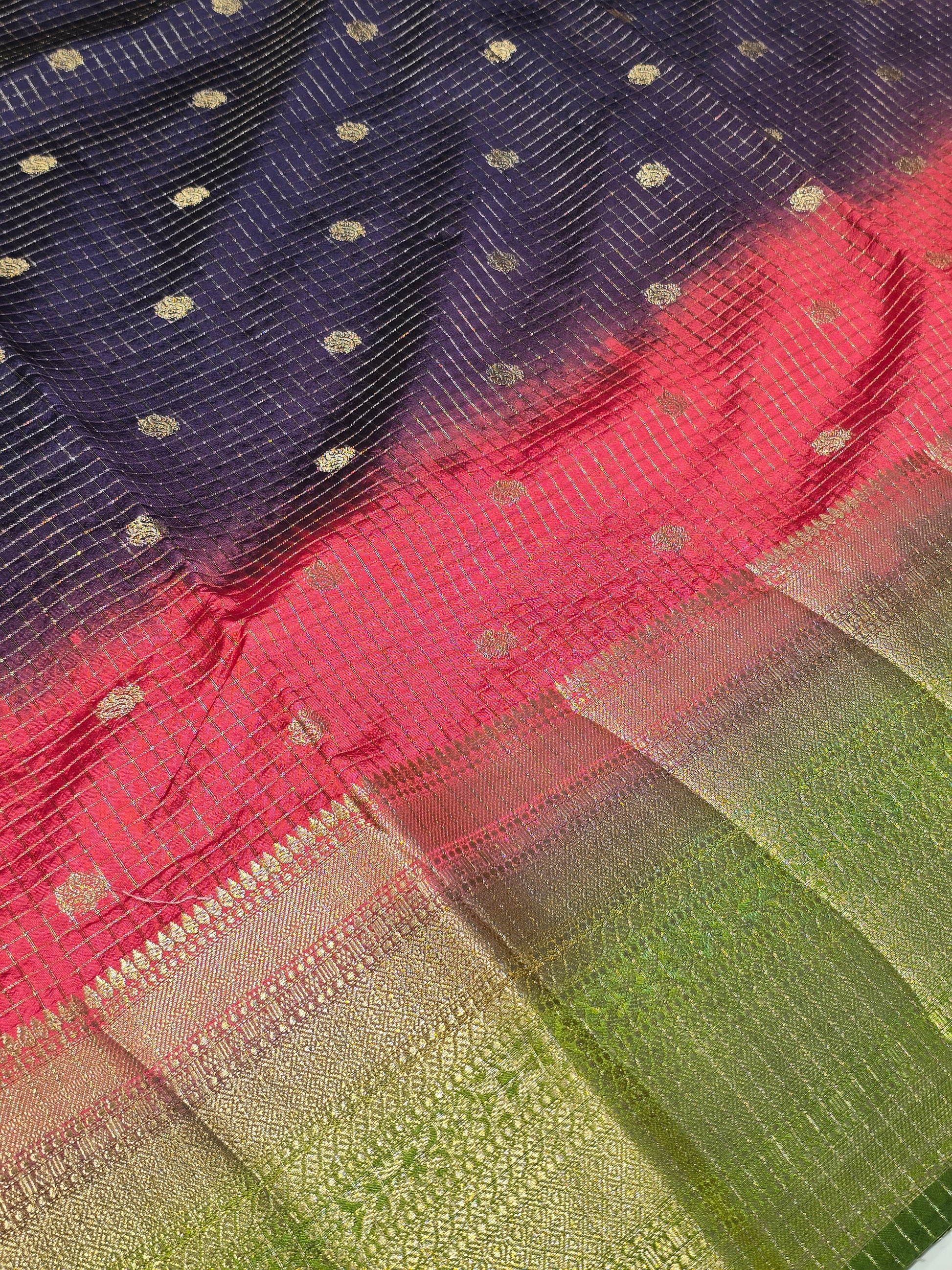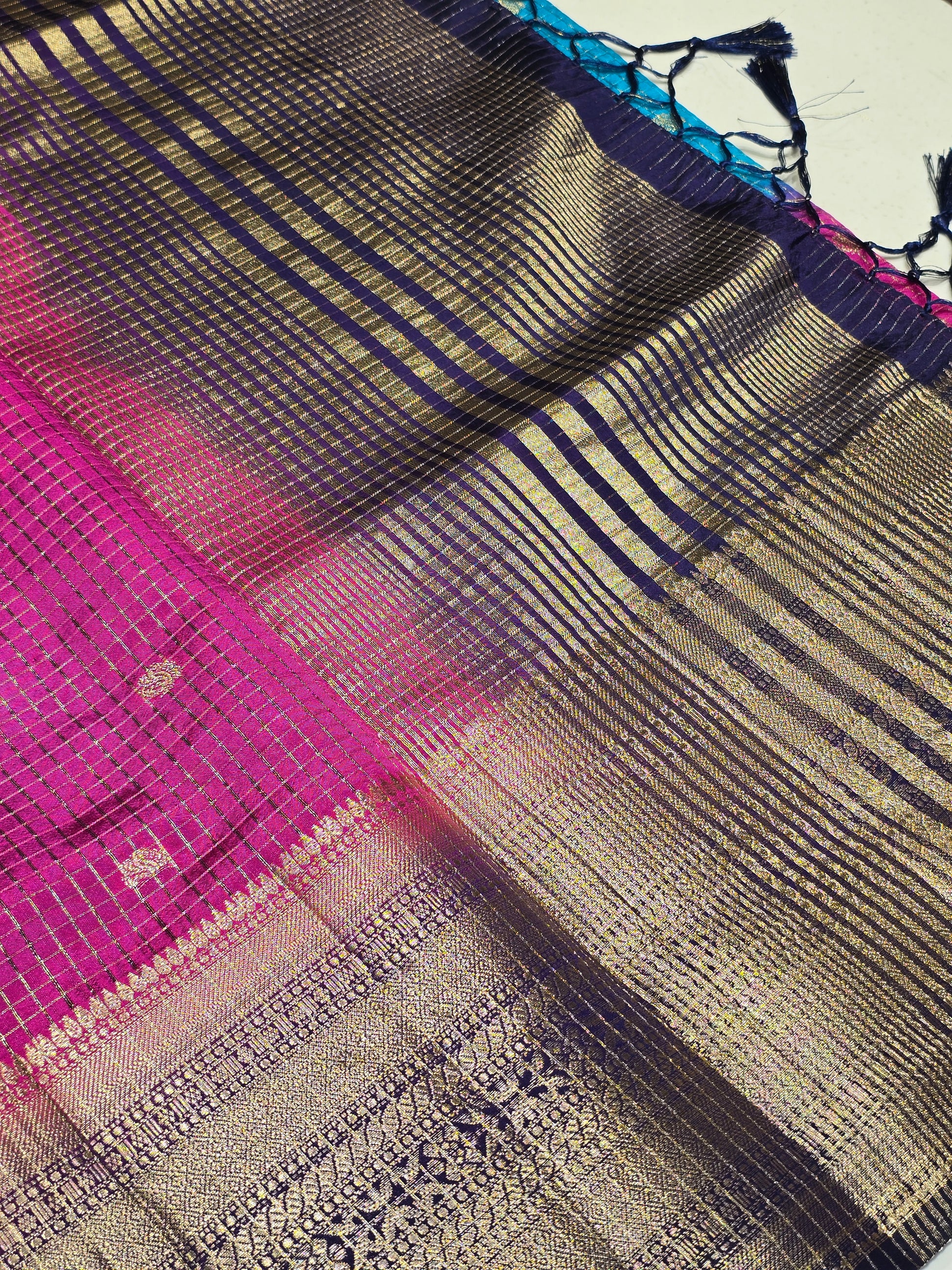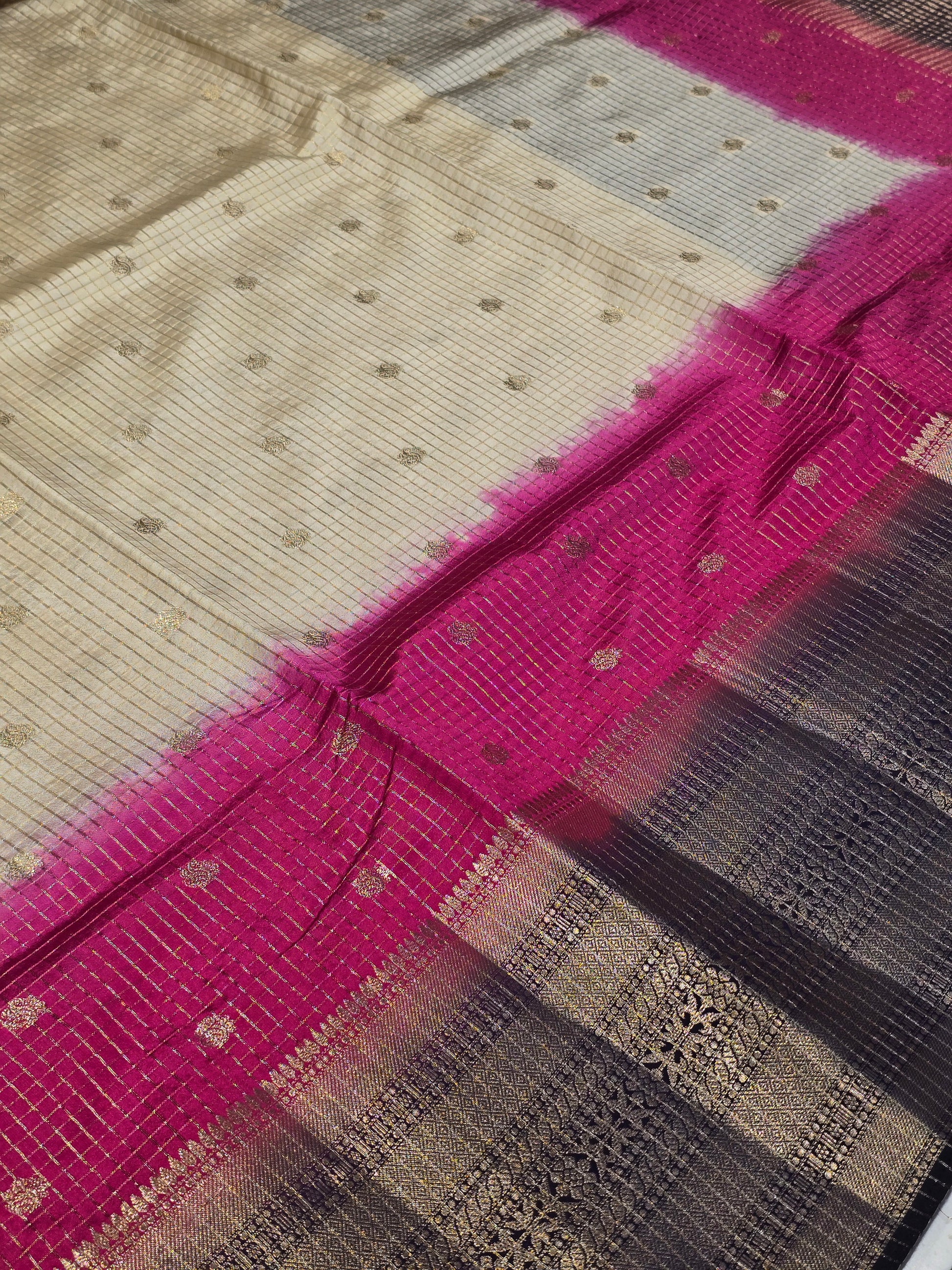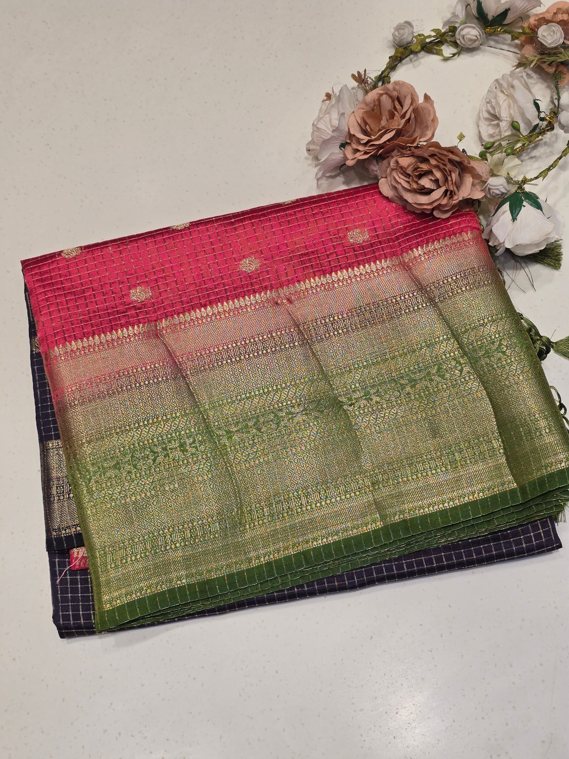 Material composition: Raw silk with checked Pattern and multiple Base with small motif