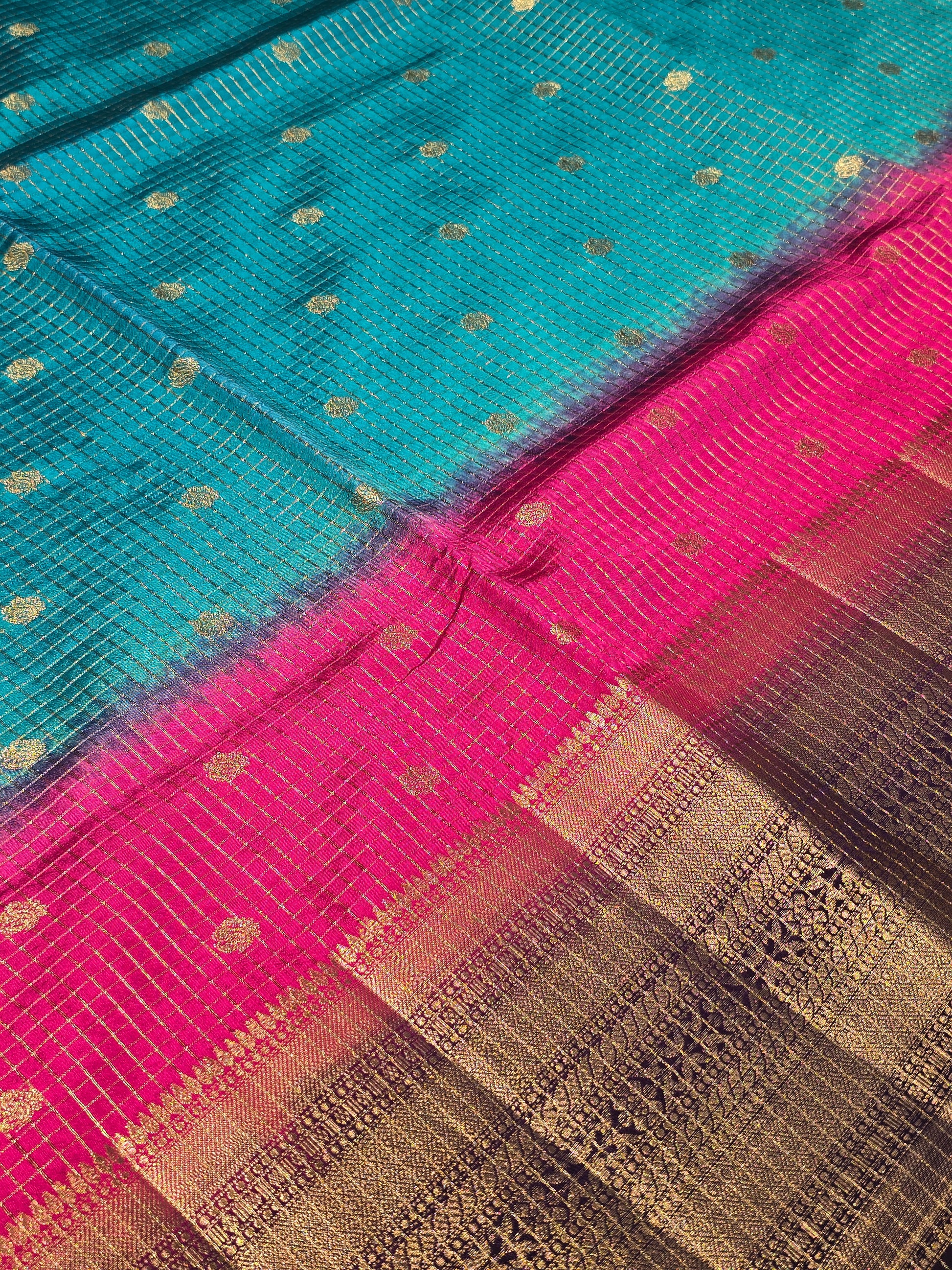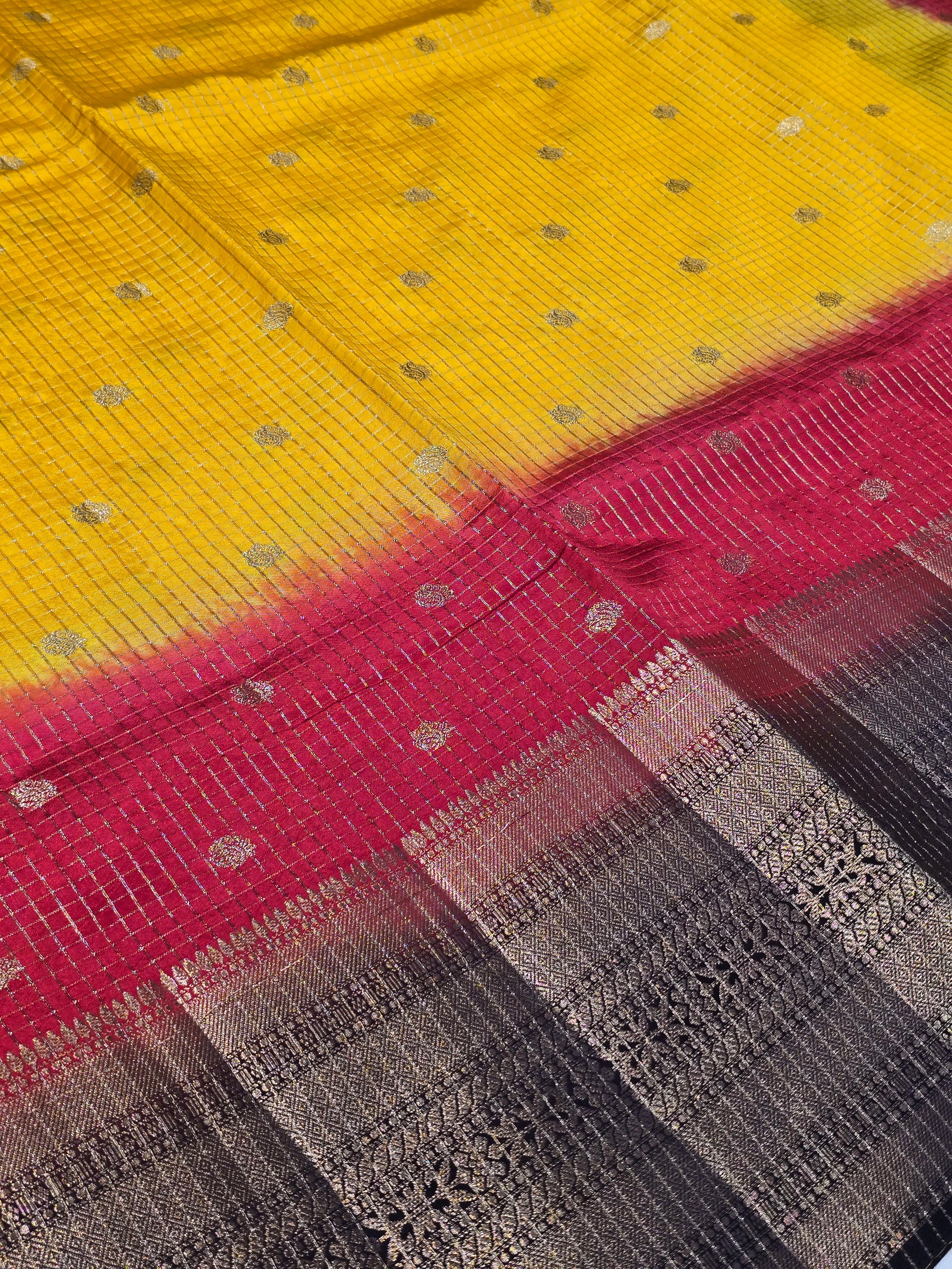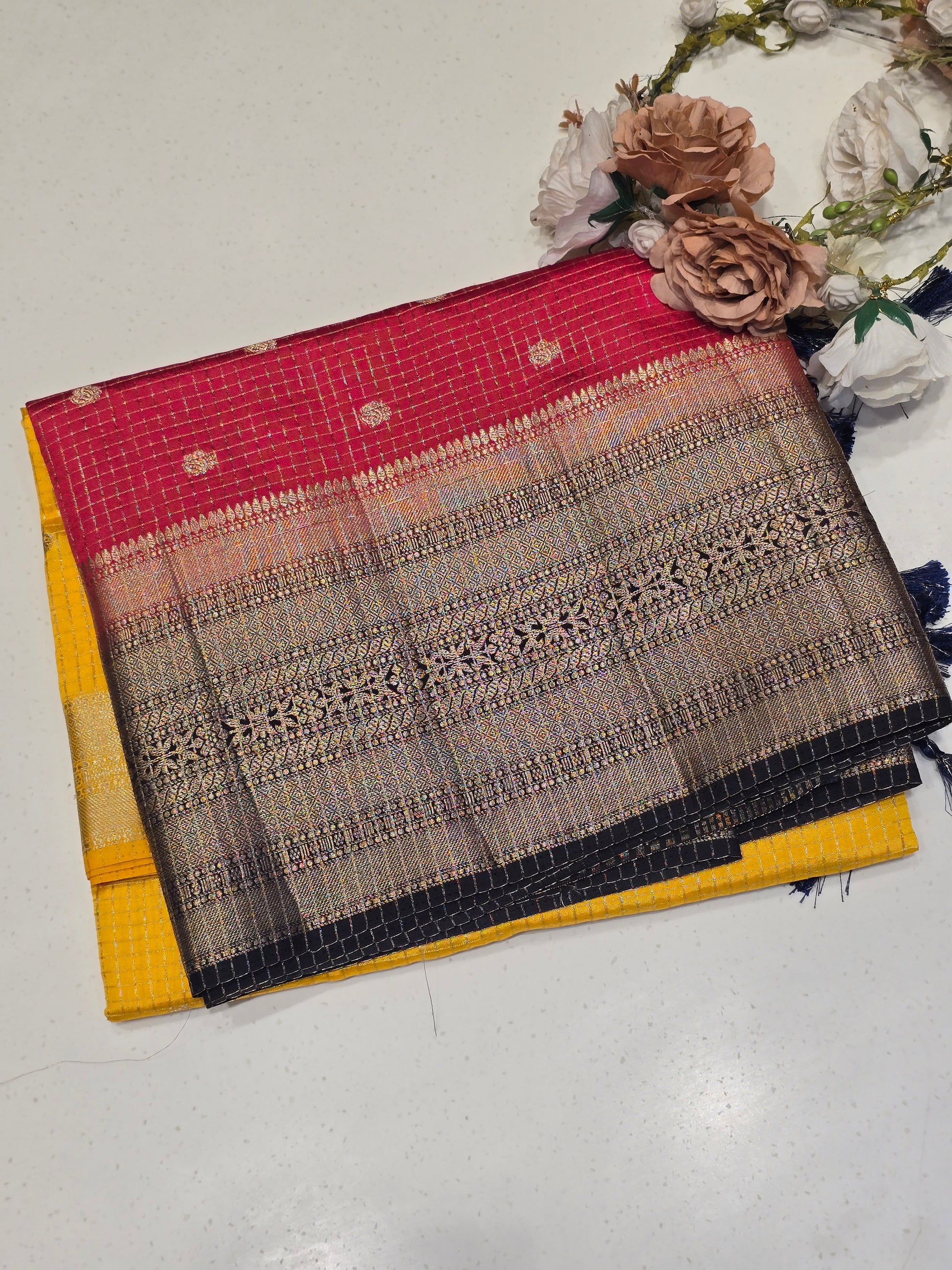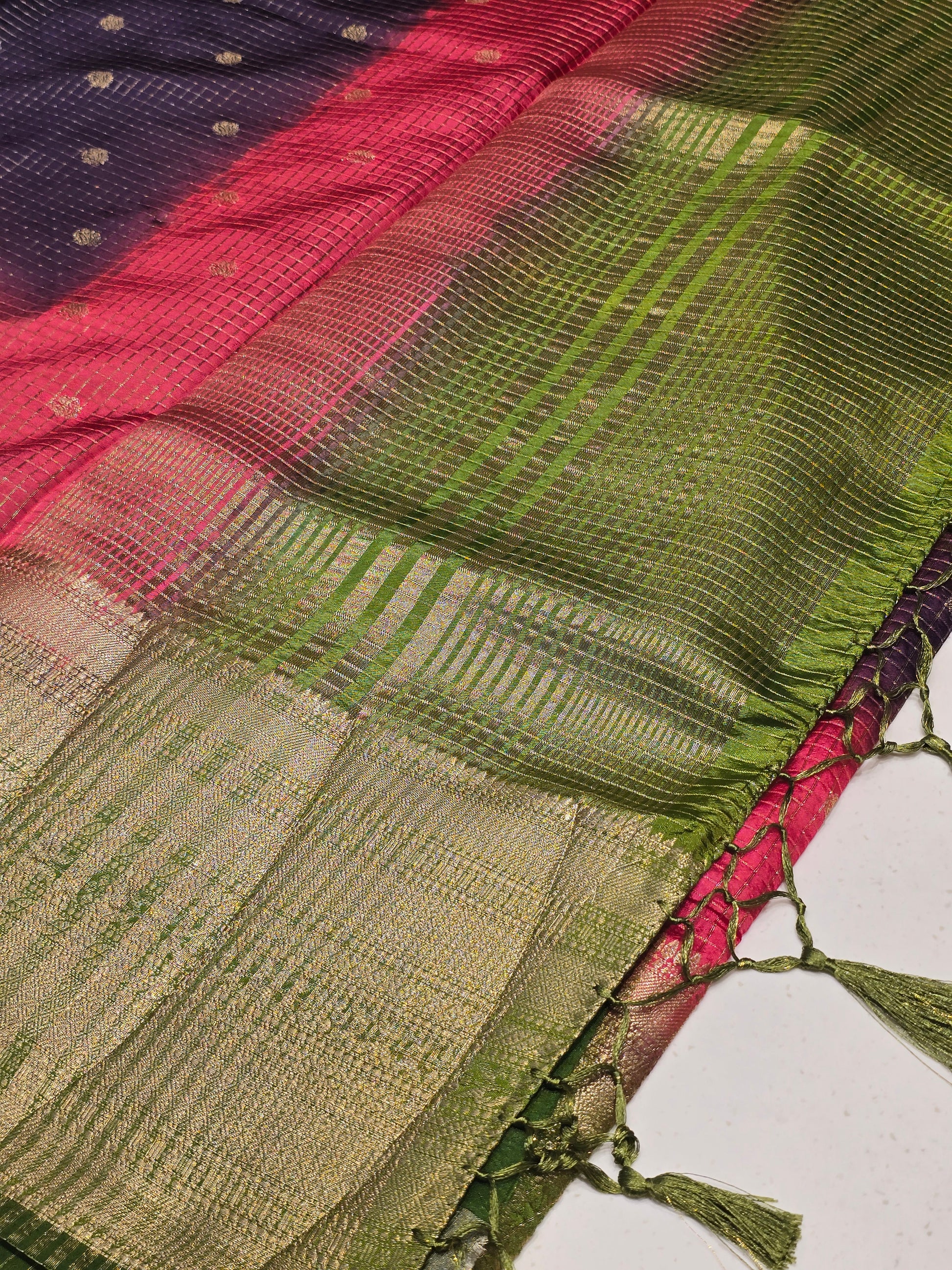 Material composition: Raw silk with checked Pattern and multiple Base with small motif