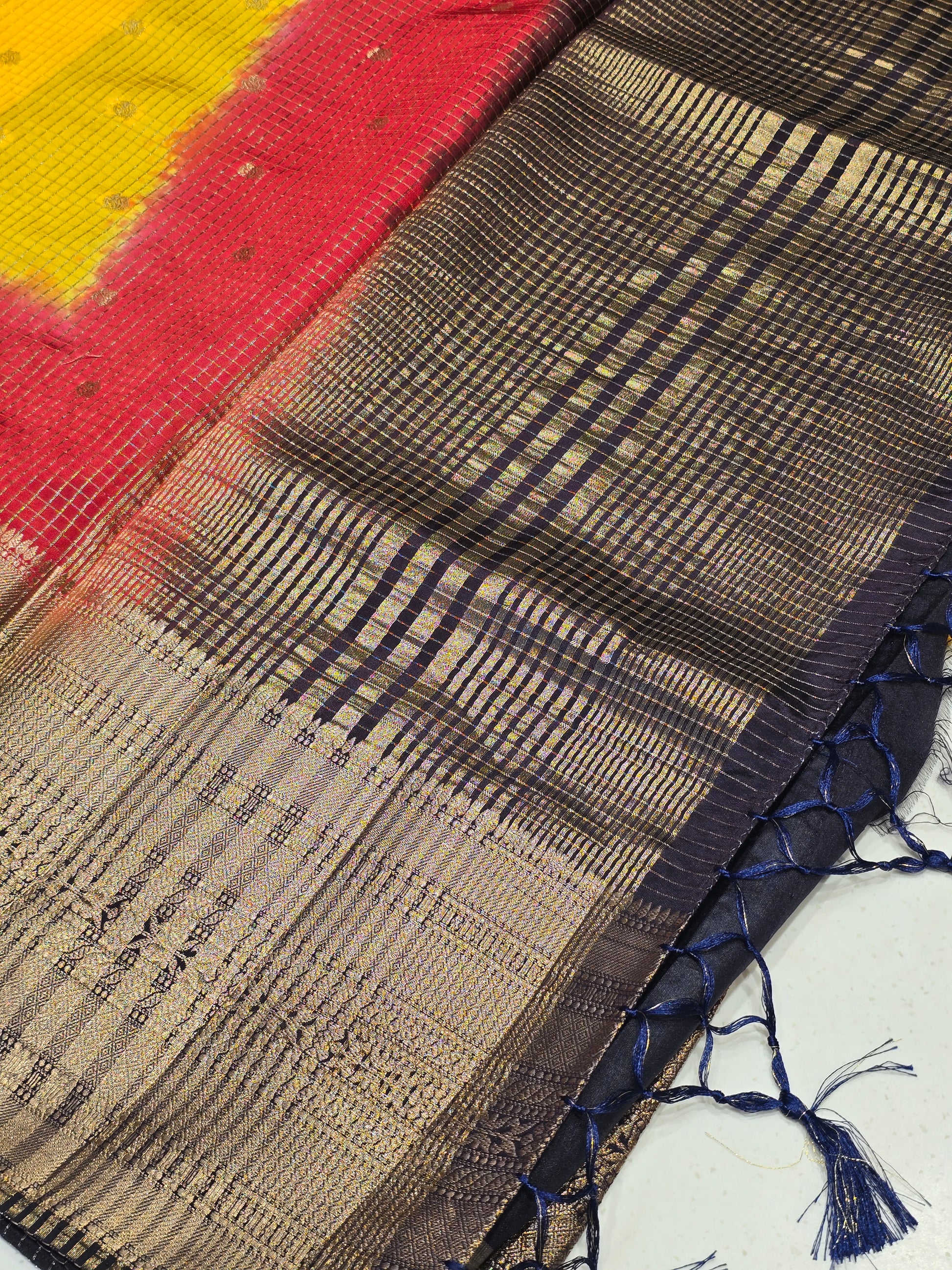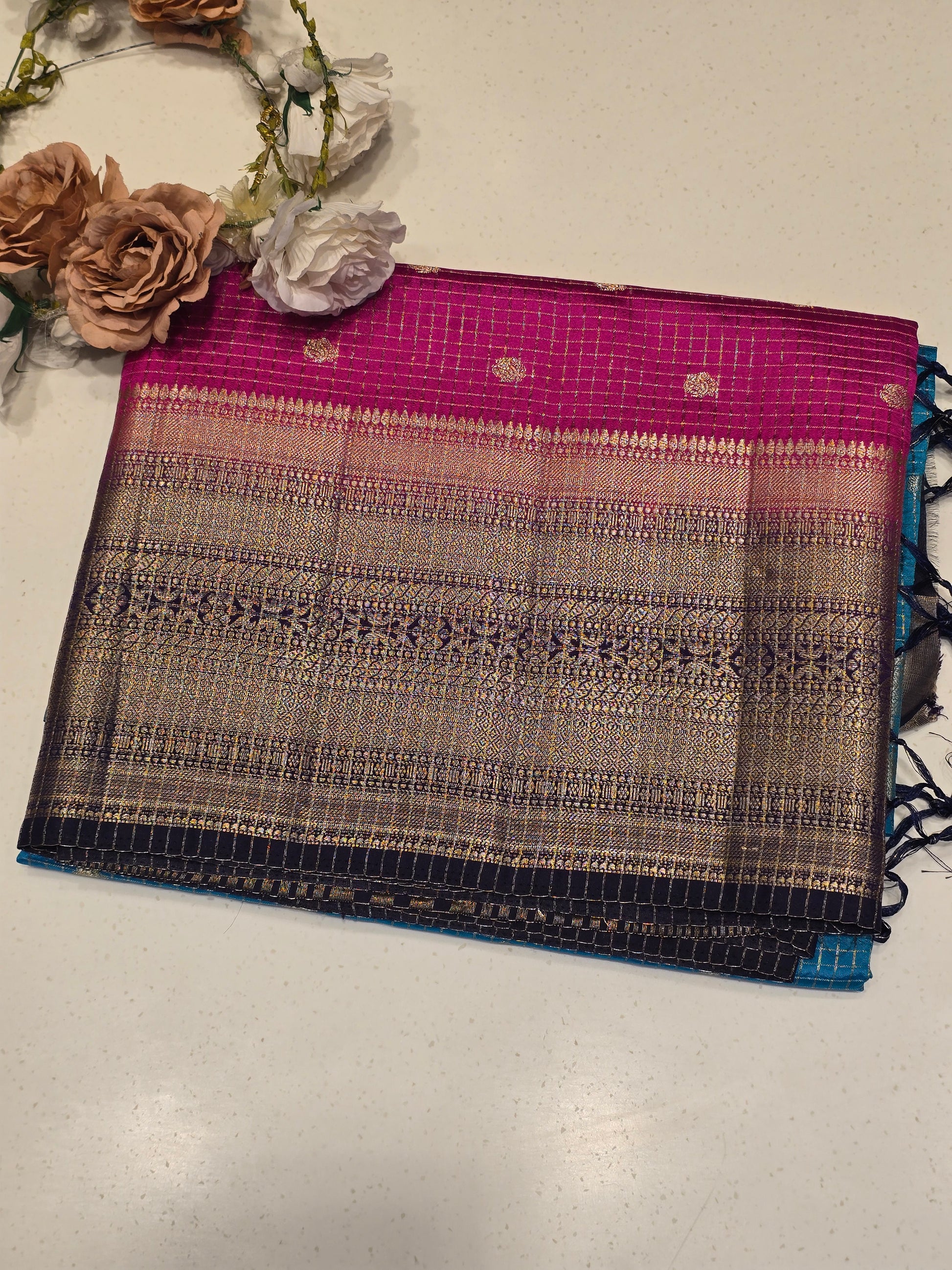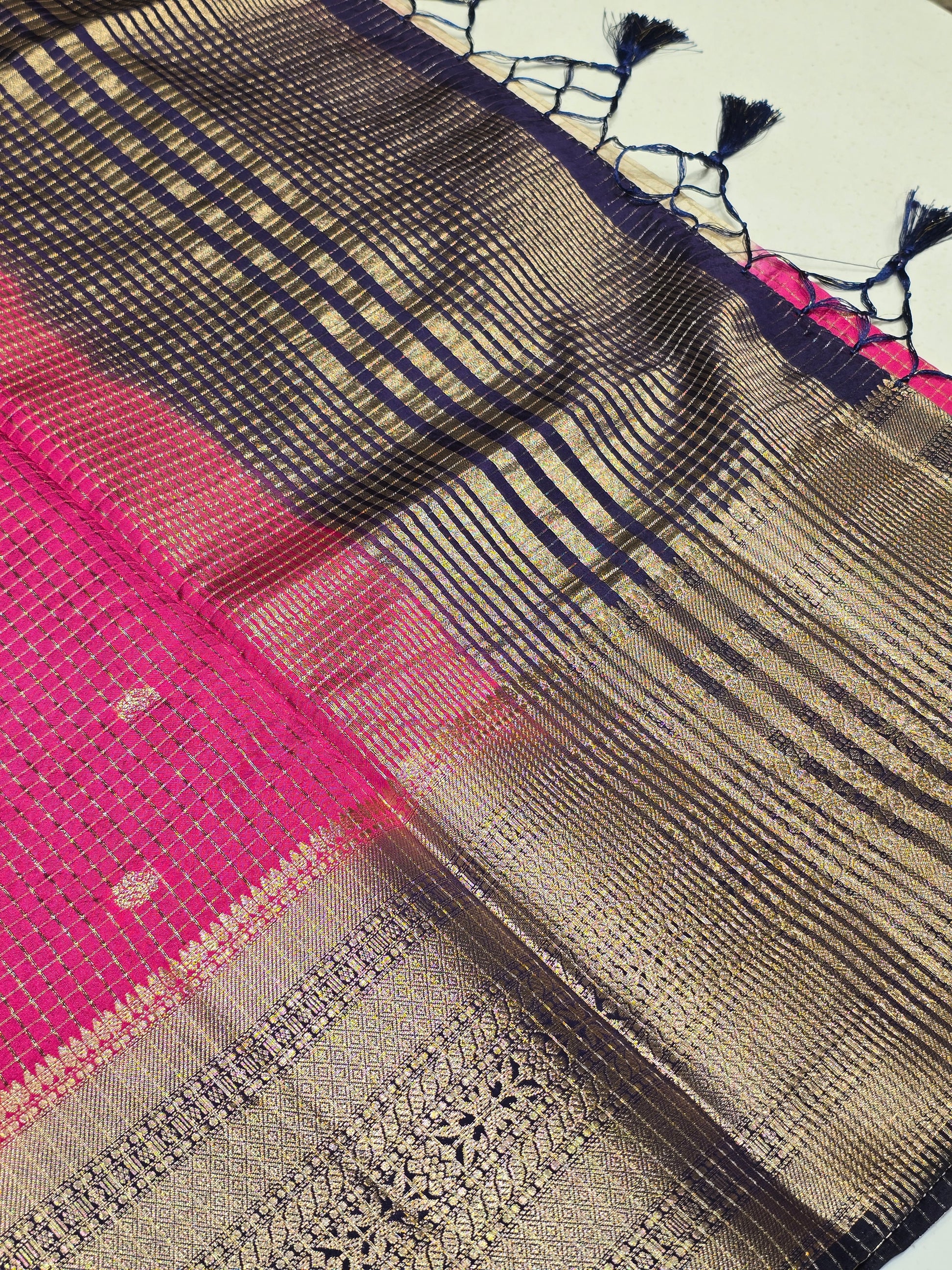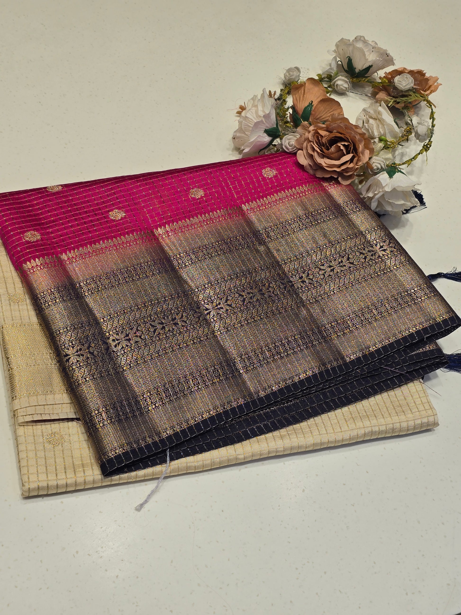 Material composition: Raw silk with checked Pattern and multiple Base with small motif