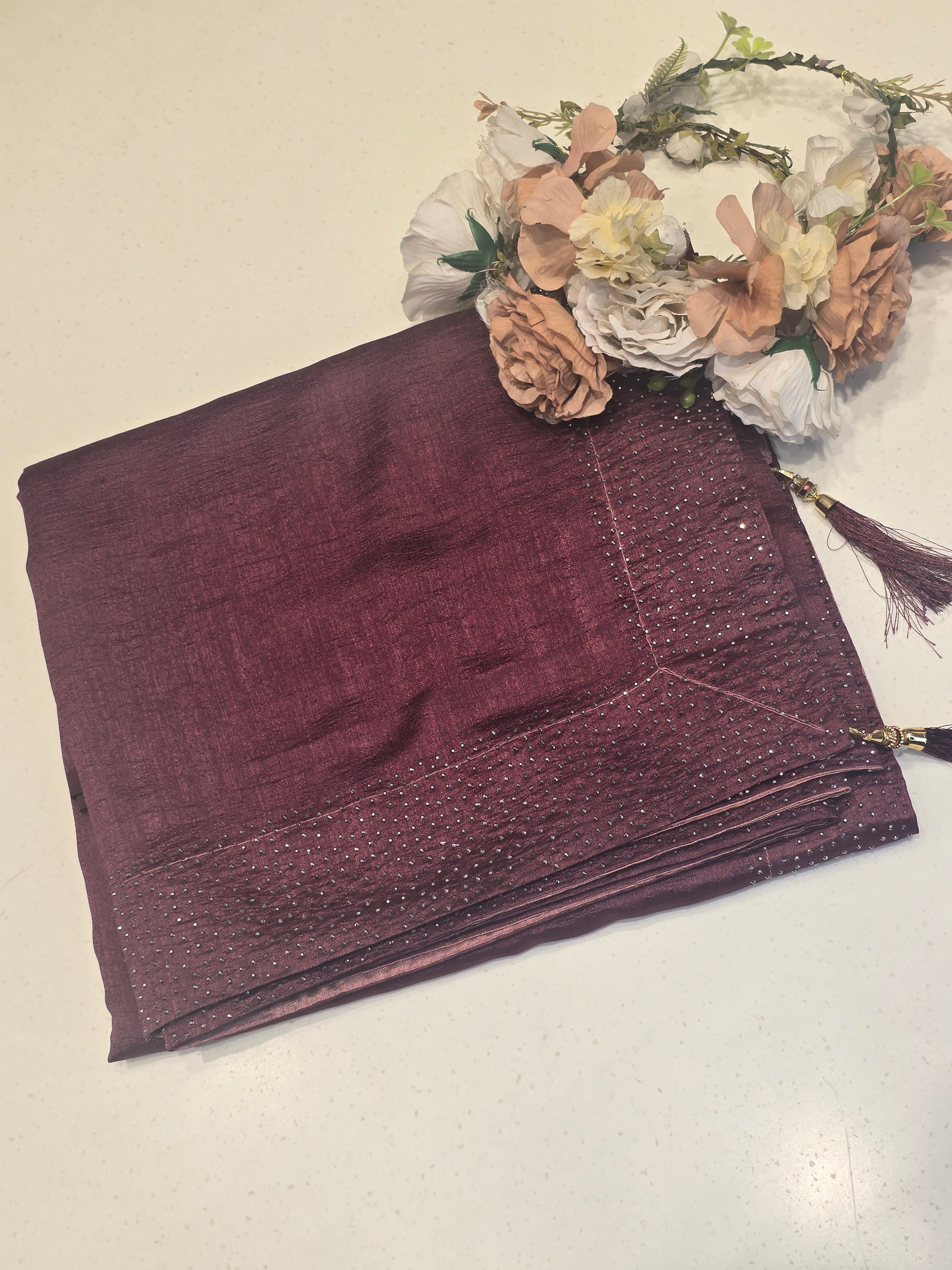 Material composition: Fancy saree with stone work and bright Border