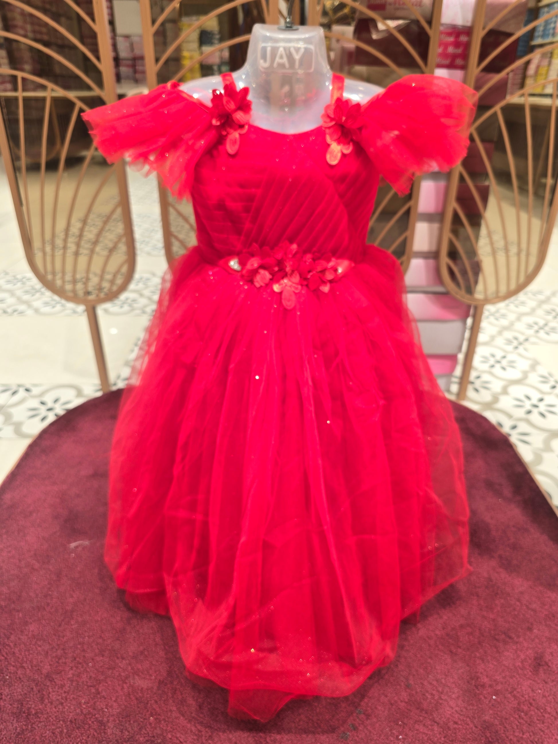 Girls Red Glitter Knitted Cool Shoulder Gown