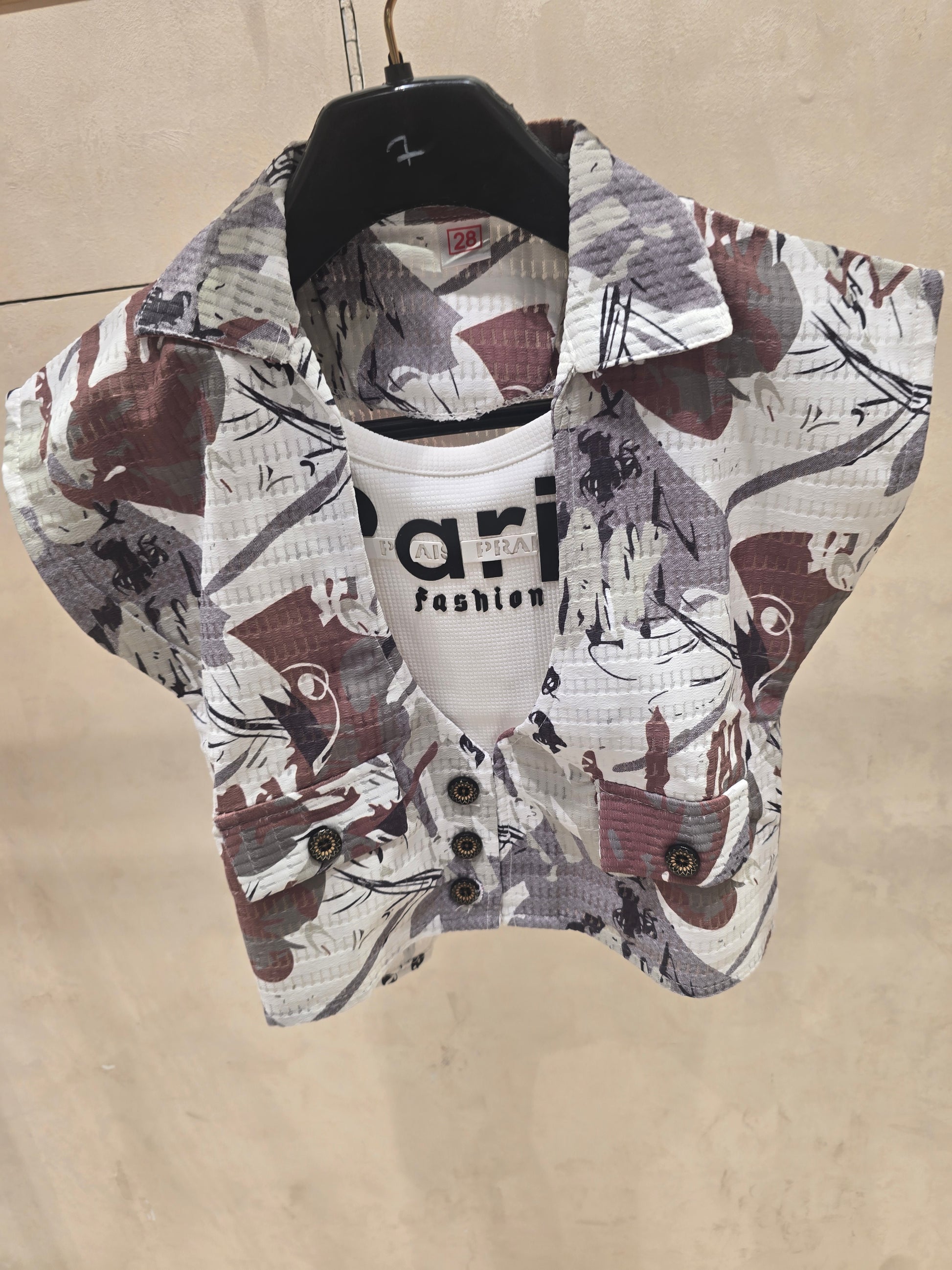 This white-based western top features vibrant multi-colour prints crafted in soft popcorn fabric for a comfortable summer feel. Designed with a neat collar neck and paired with a matching white T-shirt inner, it offers a smart layered look with easy wearability. Lightweight and playful, this top is ideal for casual outings, daily wear, and relaxed summer styling.