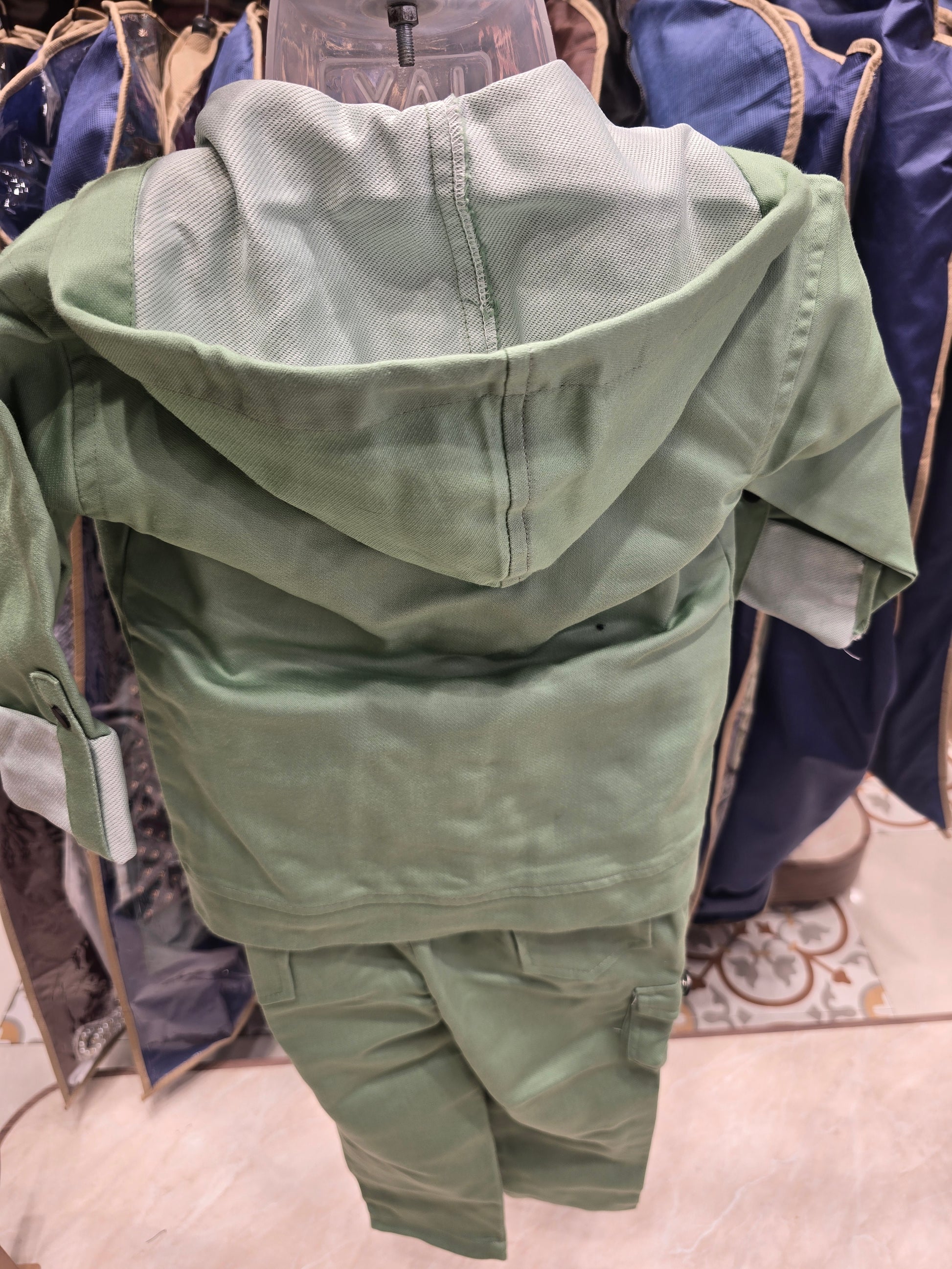 This boys lycra cotton 3 piece summer wear set in an elegant cream color is designed for a smart yet comfortable everyday look. Crafted from soft and breathable lycra cotton fabric, the set features a stylish full sleeve coat layered over a printed inner t-shirt, paired with a contrasting black cargo pant for a modern and coordinated outfit. Lightweight and easy to wear, this set offers excellent comfort and flexibility, making it ideal for casual outings, playtime, travel, and summer wear where style, comfort, and practicality come together effortlessly.