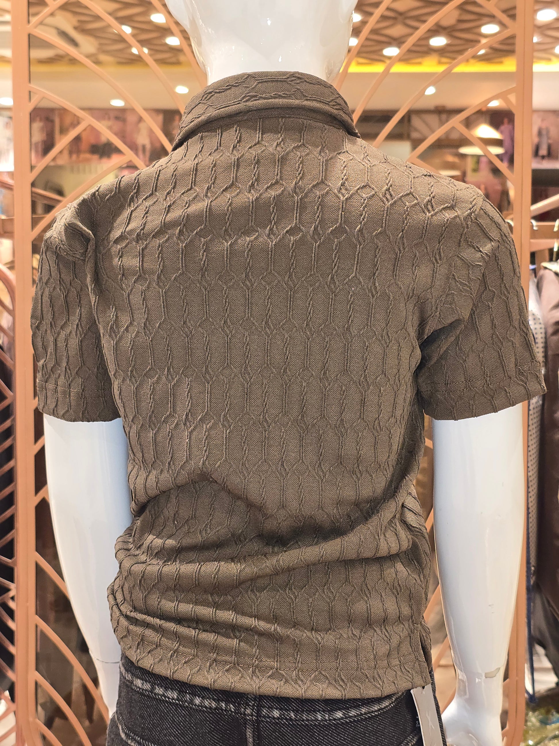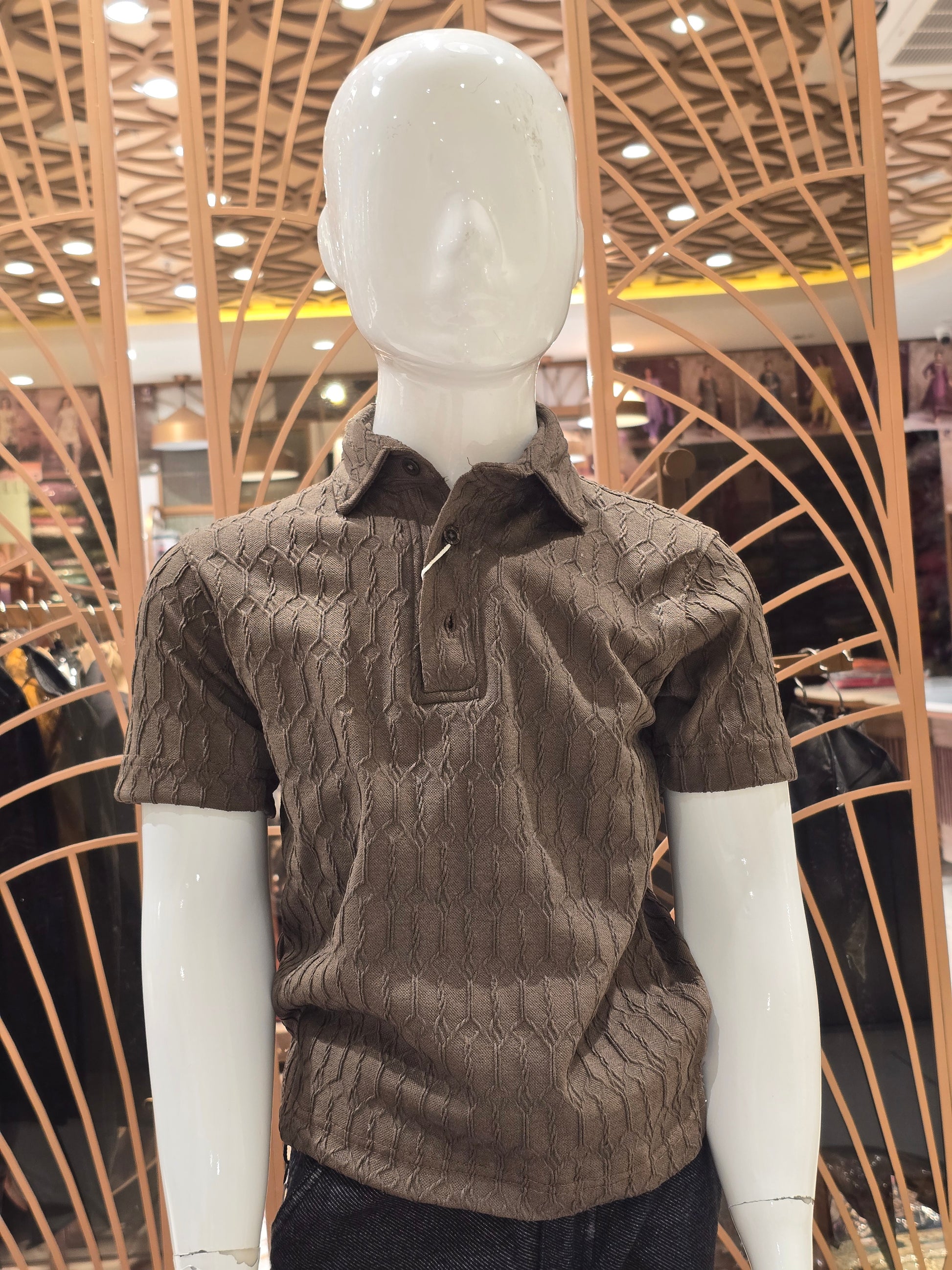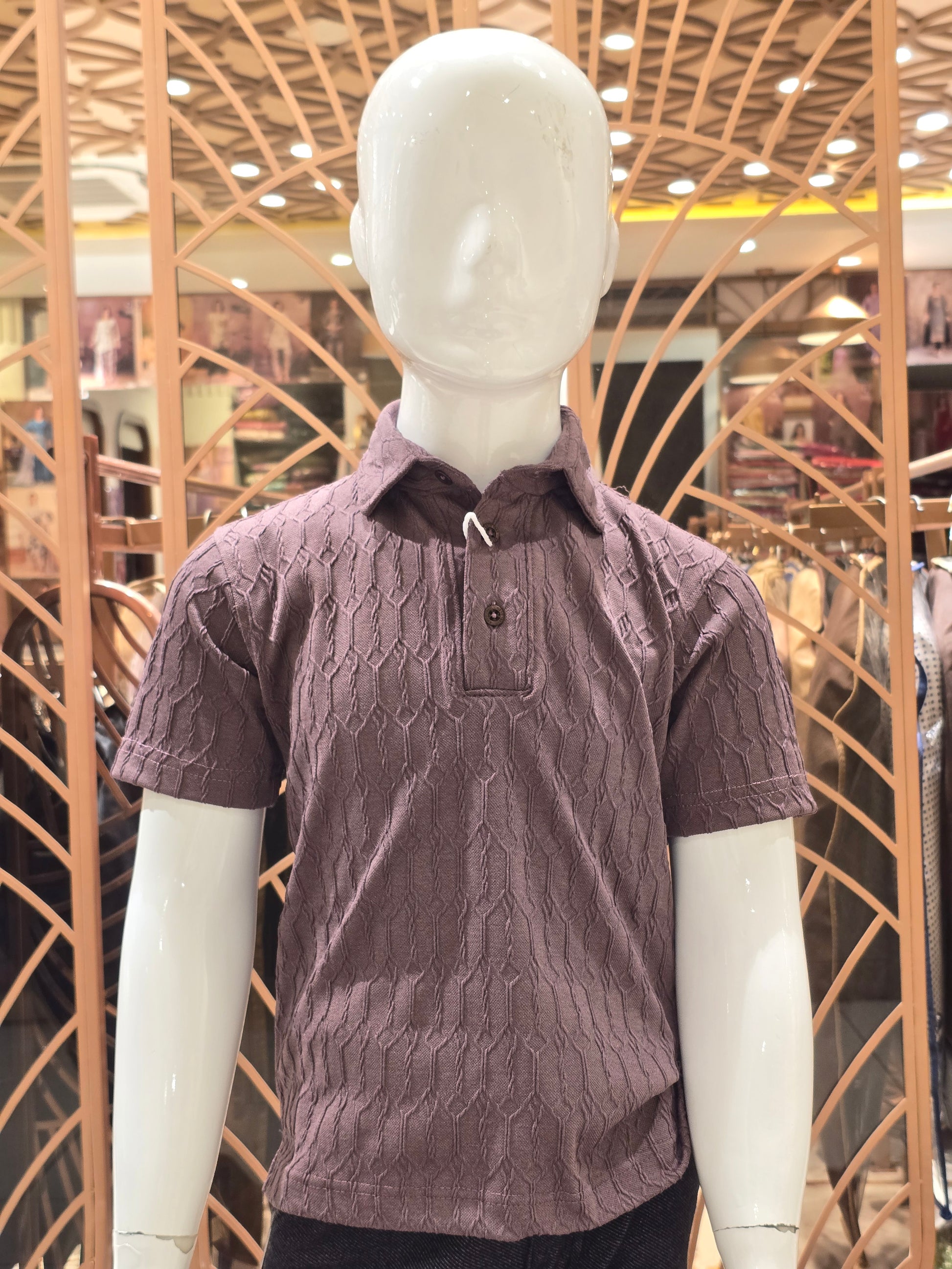 Boys Lavender Brown Lycra Collar Neck T Shirt