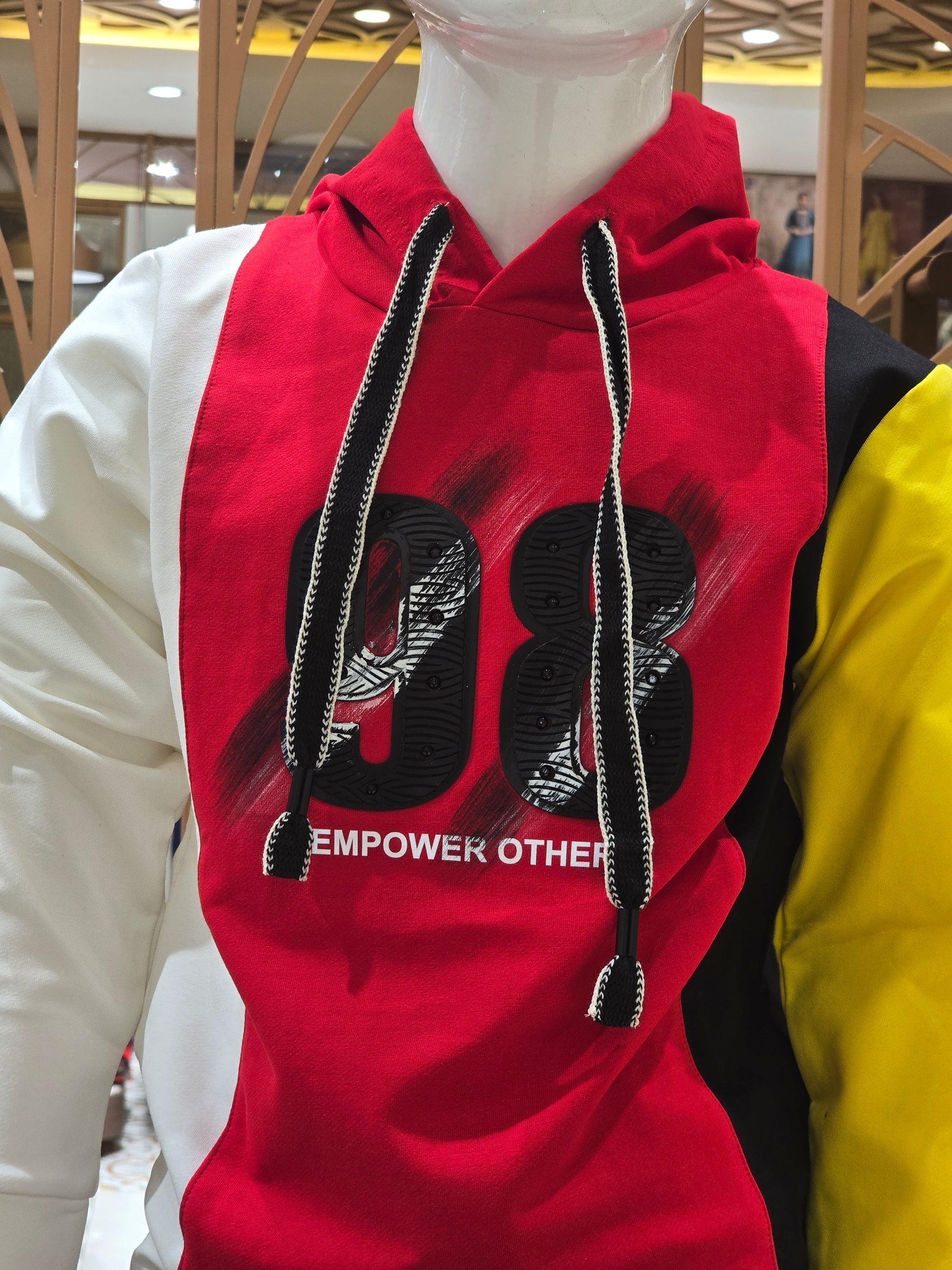 Designed in soft lycra fabric, this multicolour hoodie t-shirt offers a comfortable stretchable feel with a sporty casual look. The attached cap adds a stylish layered touch while keeping the outfit relaxed and modern. Lightweight and breathable, it is ideal for everyday wear, outings, and all-season styling. A trendy wardrobe essential that blends comfort with playful design.