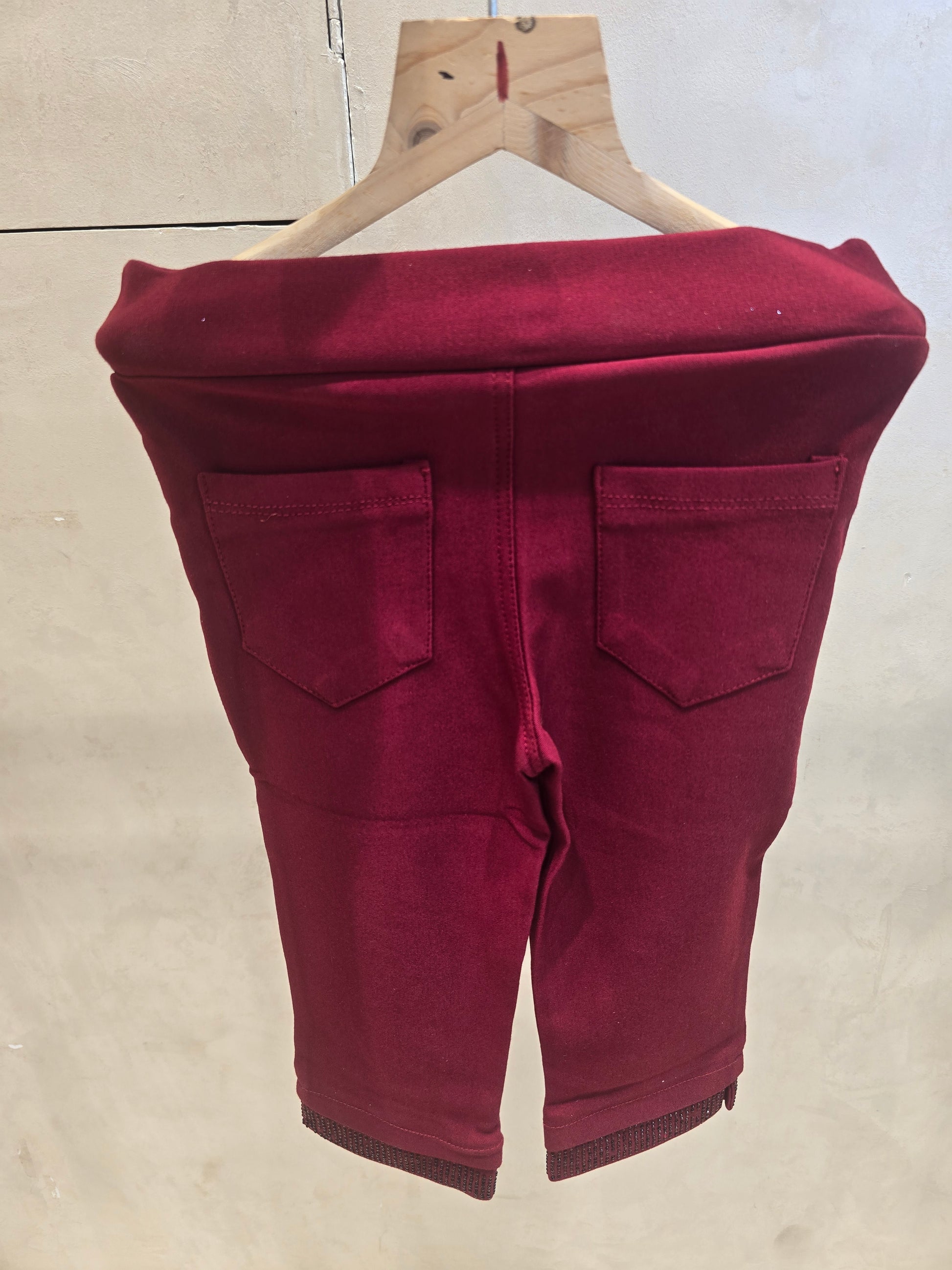 Maroon Cotton Capri Pant with Elastic Waist and Stone Work – Girls Half Pant