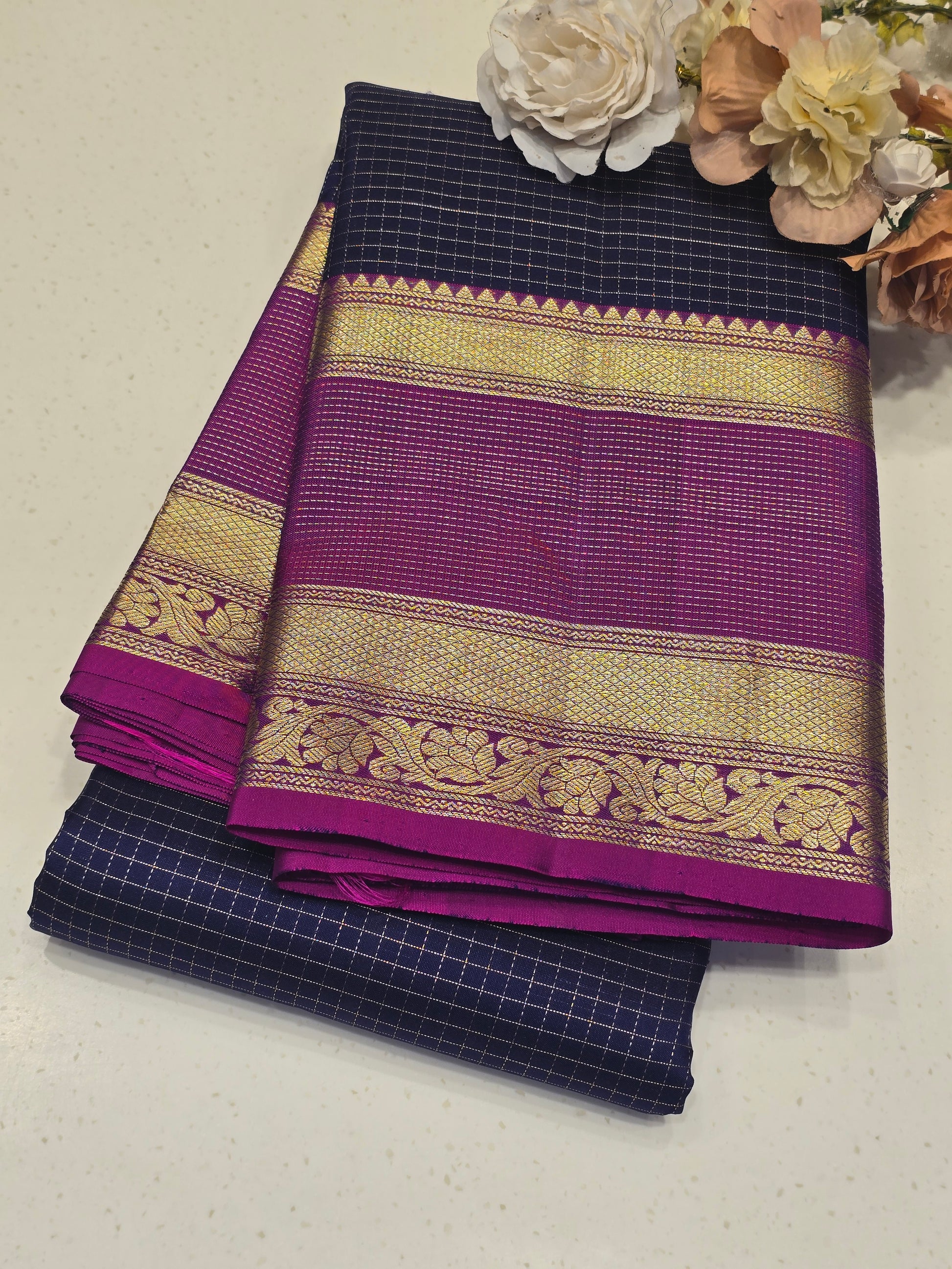 Pure Kanchipuram Handloom Silk Saree with Checked Weaving & Rich Bantex Zari Border | Festive & Bridal Collection