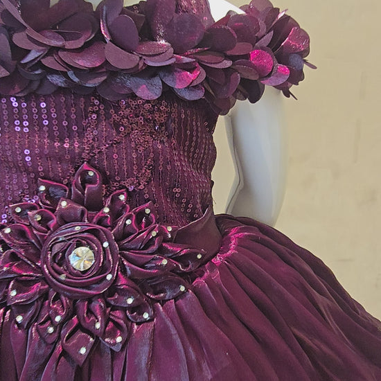 Girls Satin Party Wear Short Frock with Speghetti Style, Sequence Flower Design and Floral Stone Waist Work for Special Occasions
