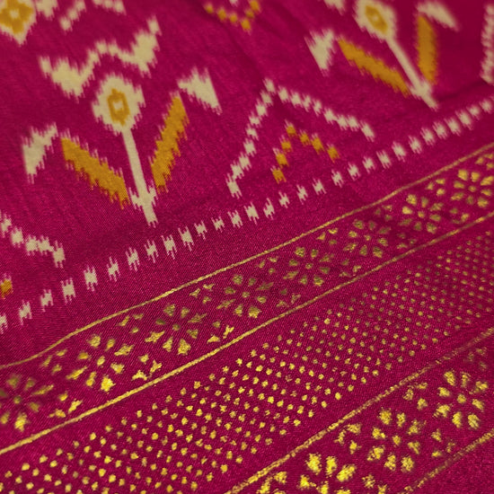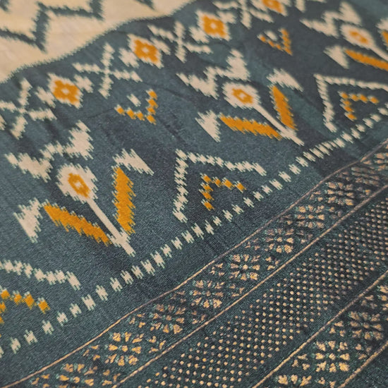 Semi Patola Silk Saree with Traditional Ikat Weaving & Zari Border | Elegant Festive & Wedding Wear Saree for Women
