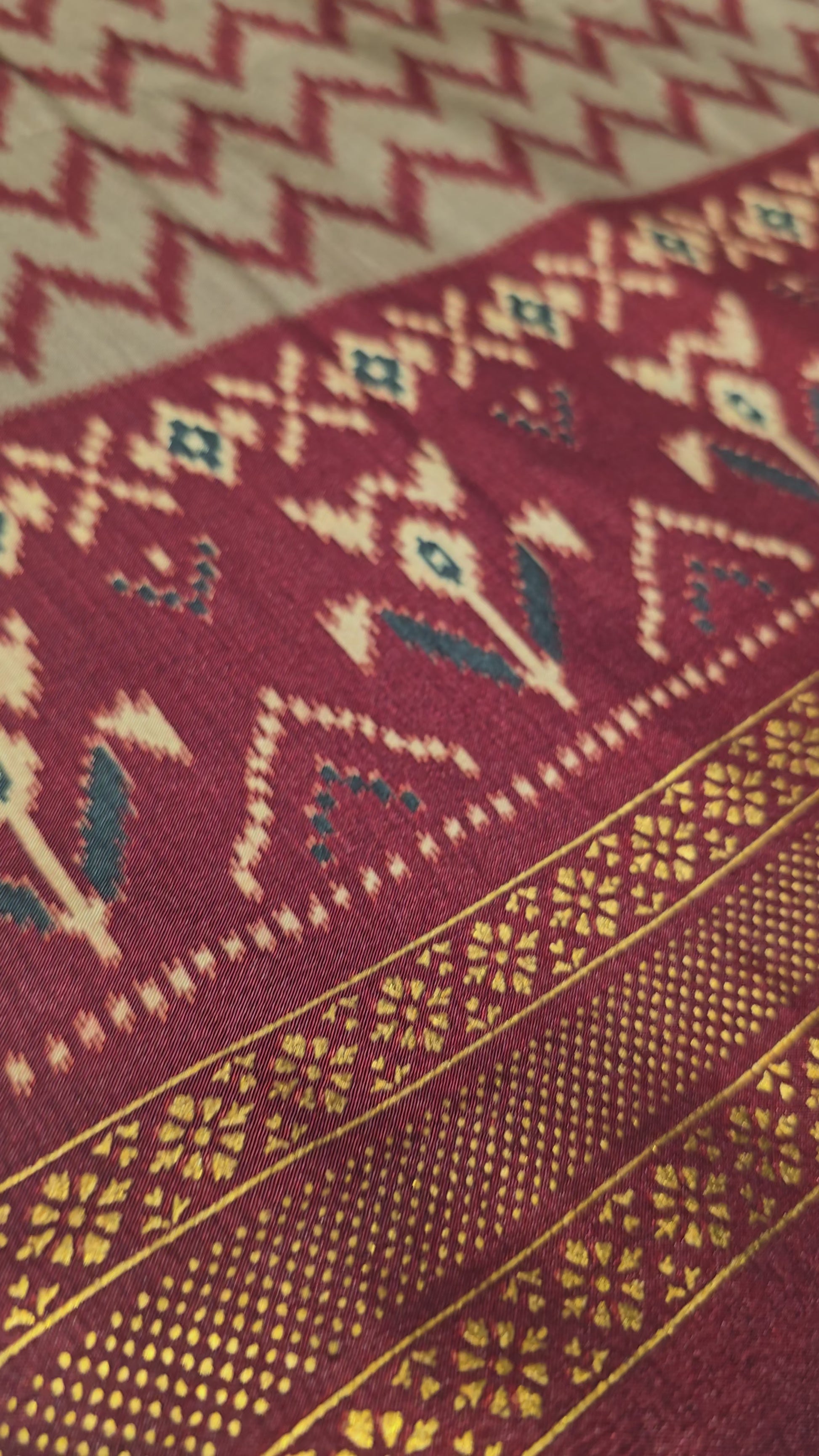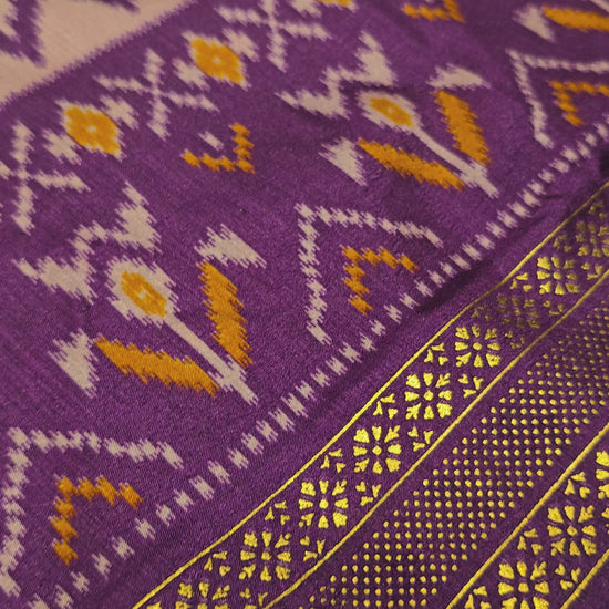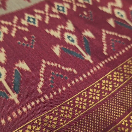 Classic Patola-inspired ikat motifs across the saree body