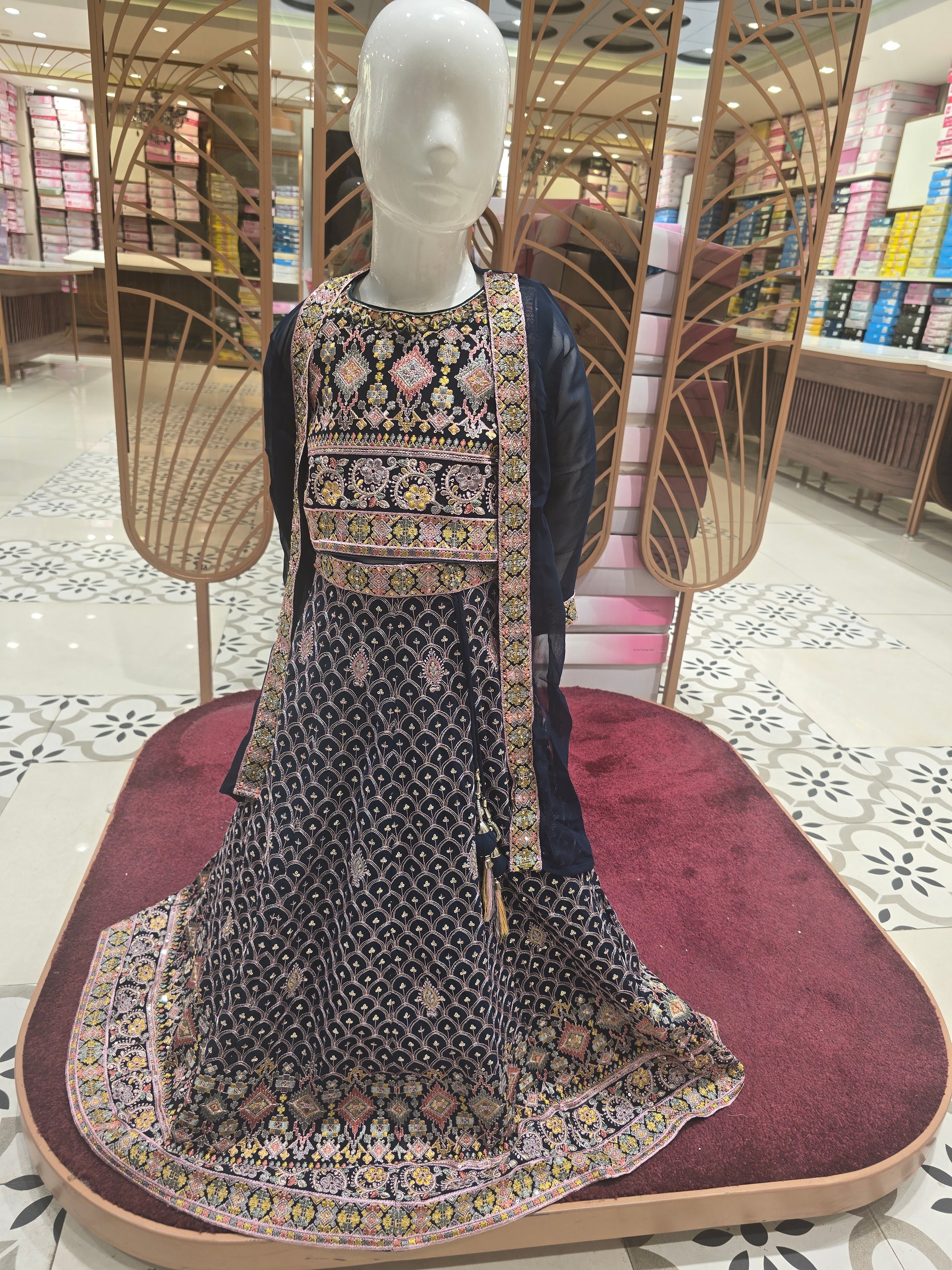 Girls Shiffon Ghagra Choli with Full Thread Work and Shrug