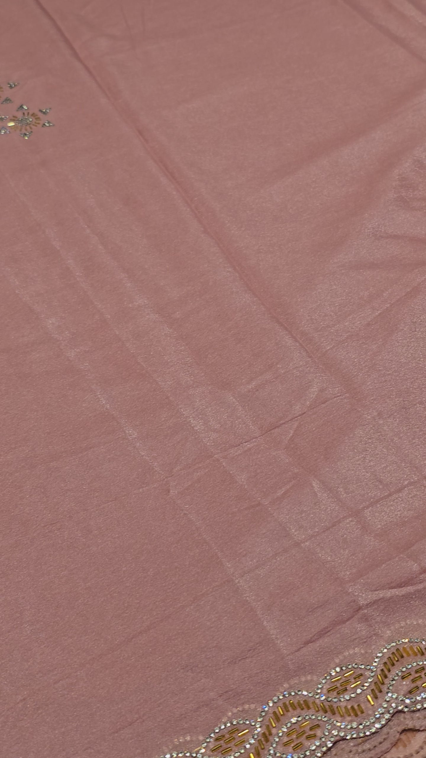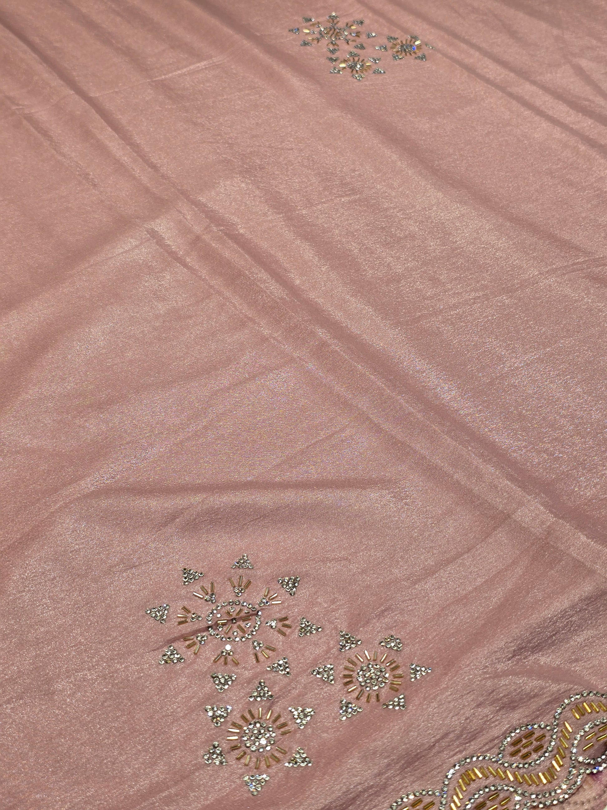 Shining Satin Saree with Stone Work & Cutwork Border – Onion Pink | Festive & Daily Wear