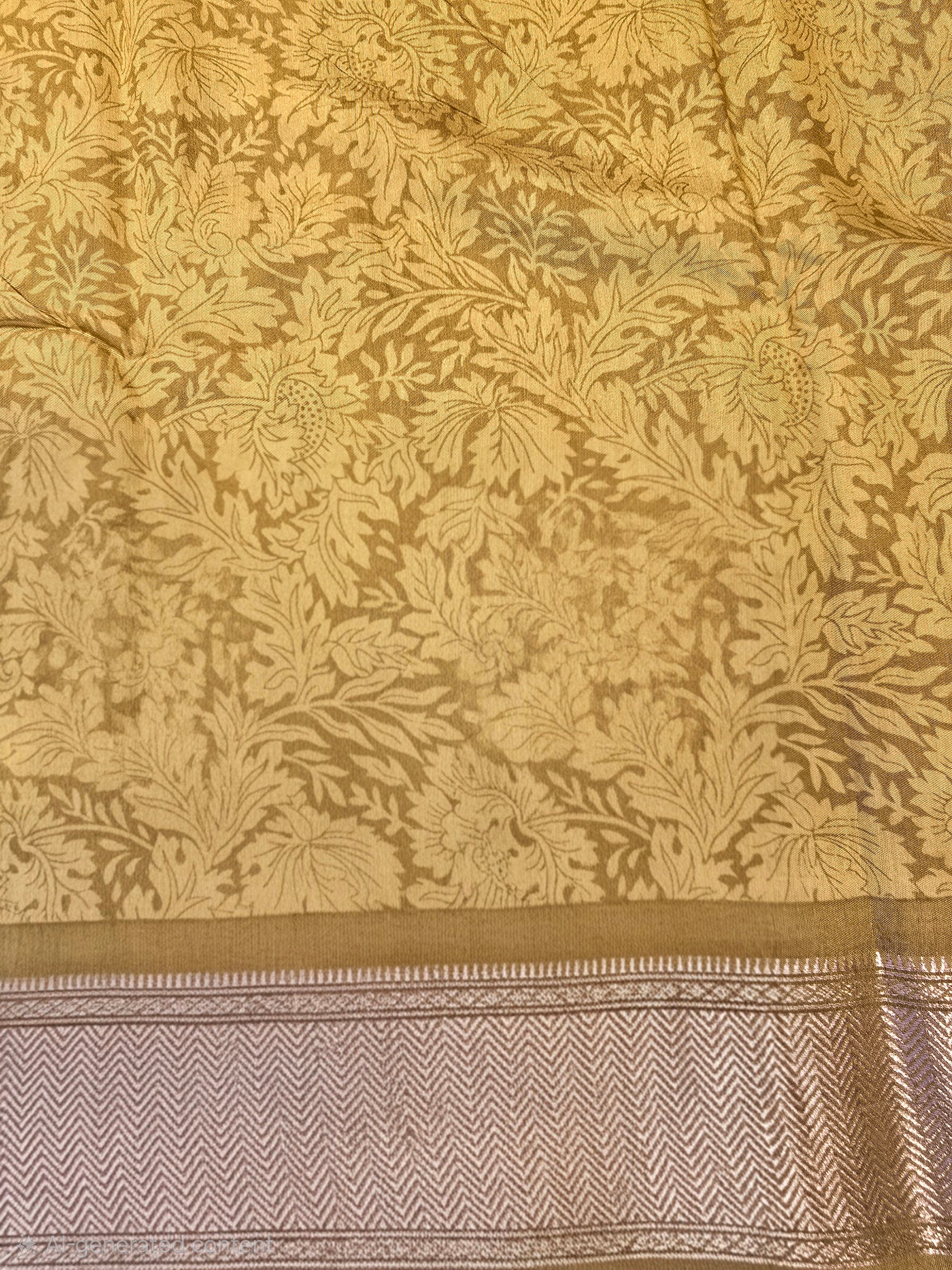 The saree features graceful printed motifs that add a touch of charm and simplicity. The classic Gatti border enhances the saree’s traditional appeal while maintaining a minimal and elegant look. Measuring 6.25 meters, this saree comes with a matching blouse piece, giving you a complete and easy-to-style outfit.