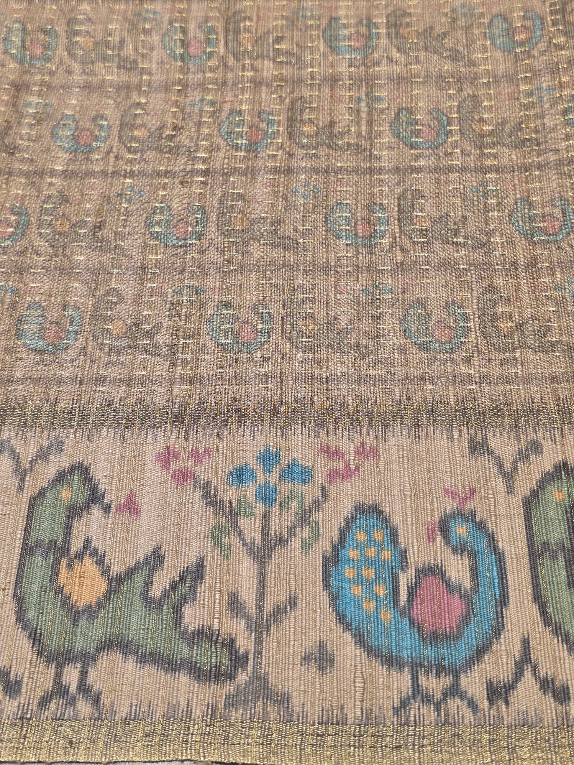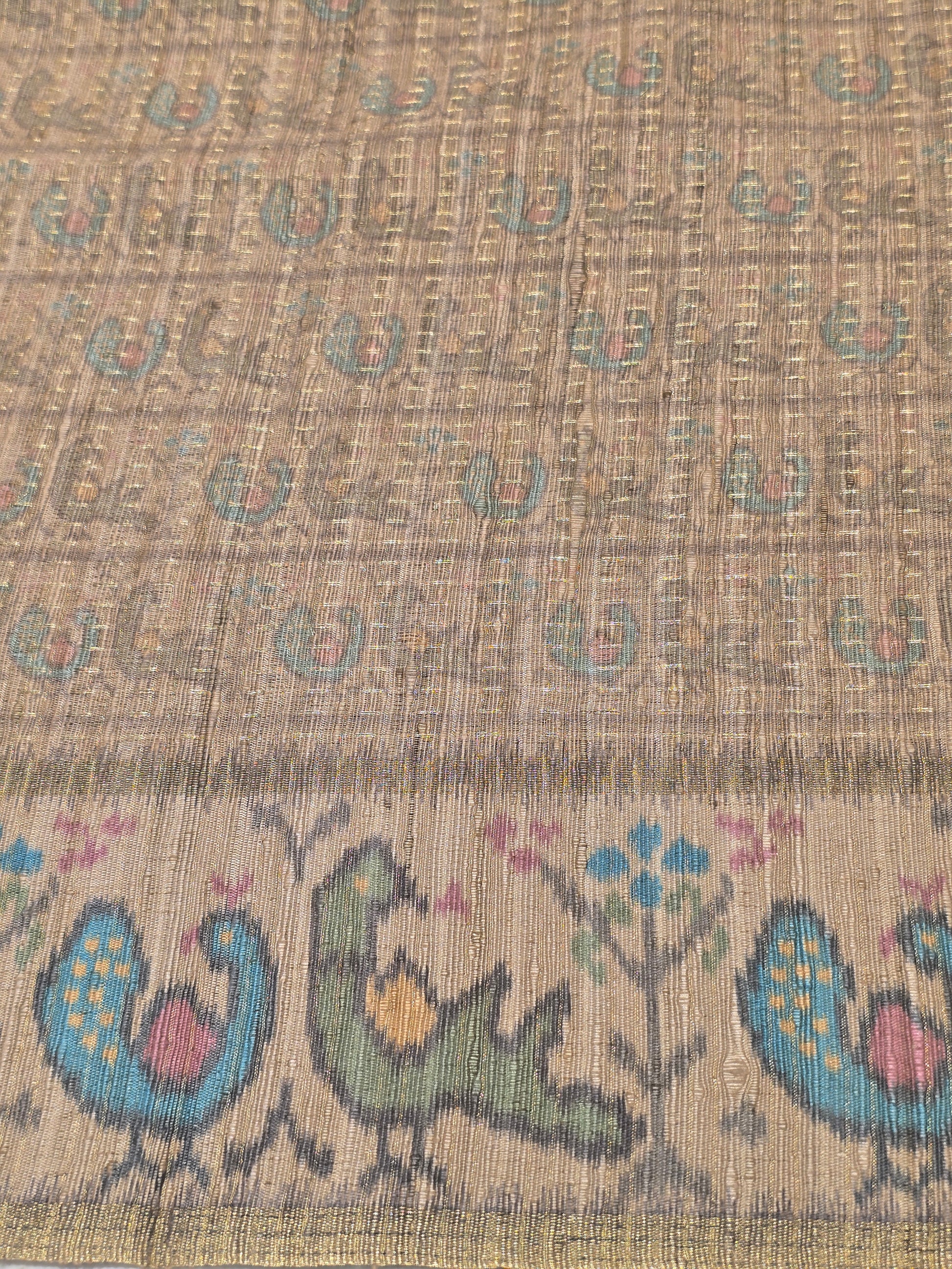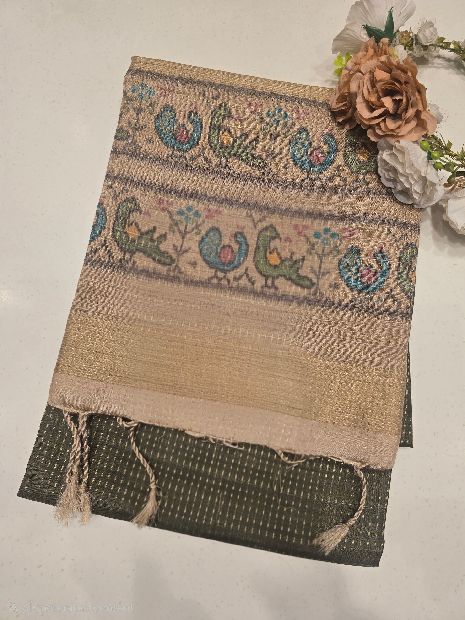 The beige art blouse enhances the saree with its refined colour palette and artistic detailing, creating a balanced and tasteful combination. Whether you're stepping out for a small celebration, meeting friends, or running your day-to-day errands, this Tussar silk saree gives a polished, classy look without feeling heavy. Its simplicity paired with artistic elegance makes it a timeless addition to your wardrobe. A perfect choice for women looking for comfort, beauty, and minimalistic sophistication in one saree.