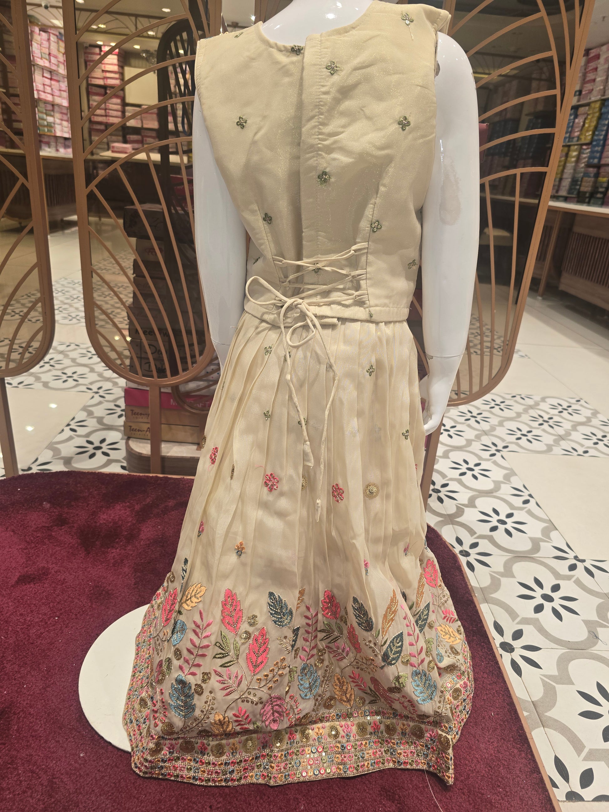 Girls Cream Tissue Silk Embroidered Gaghra Set
