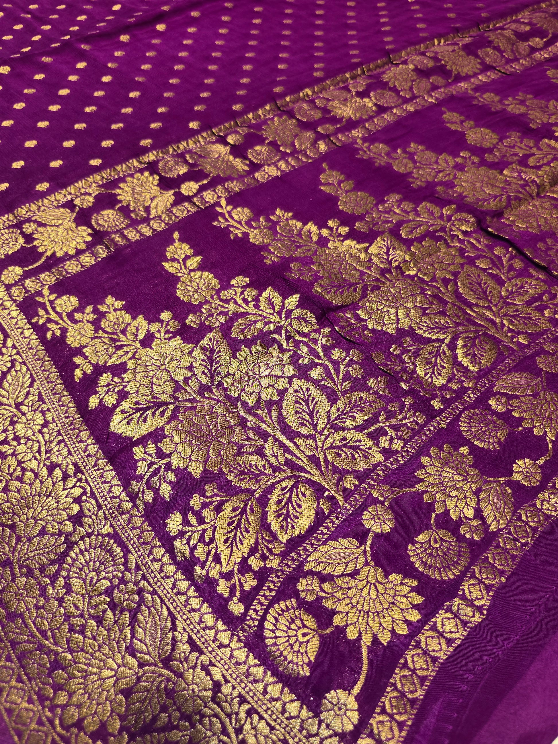 Chinon Banarasi Silk Saree with Thousand Butta & Designer Zari Border | Festive & Party Wear Saree for Women
