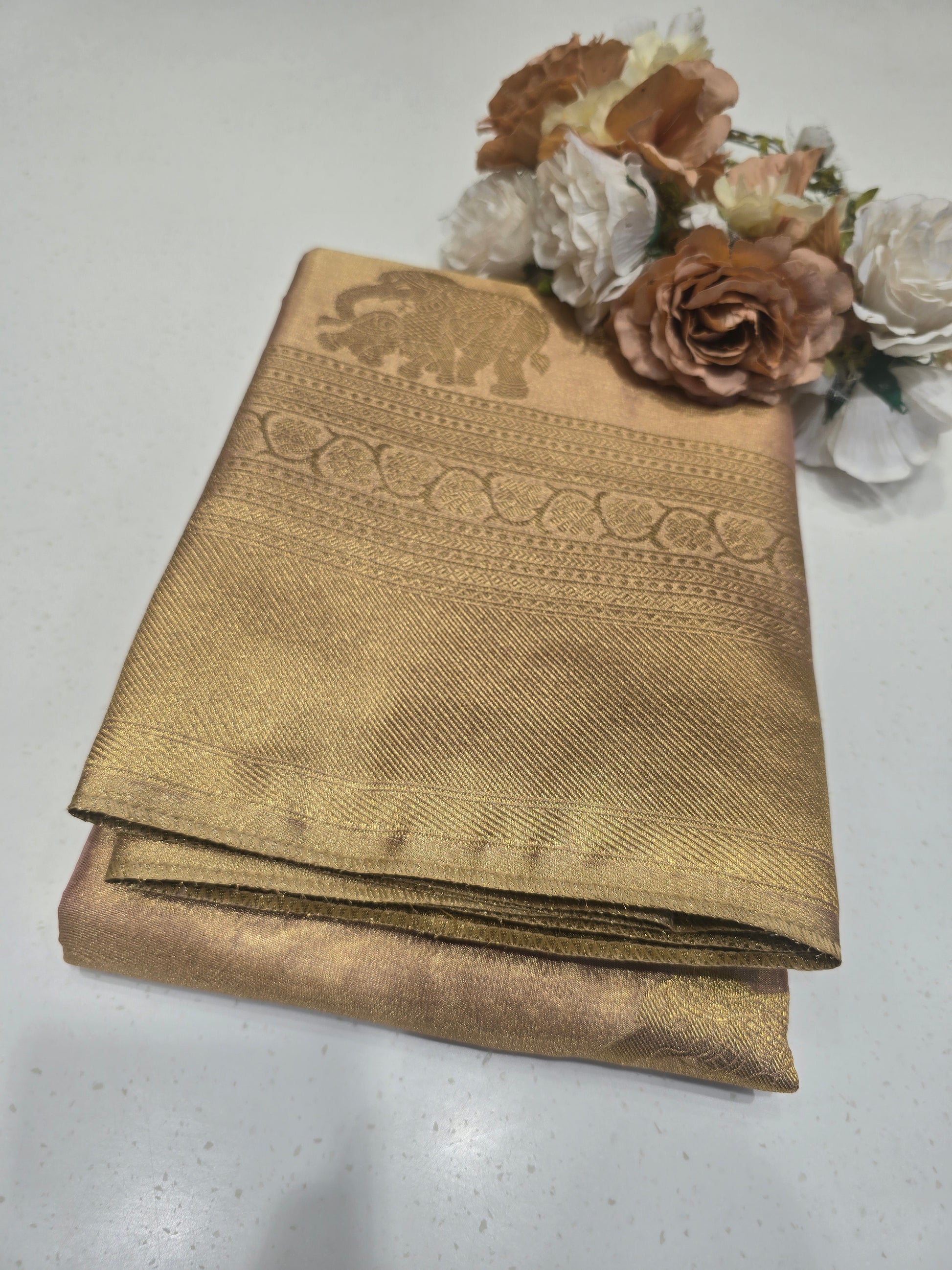 Semi Soft Tissue Silk Saree with Traditional Border, Rich Pallu & Rudrakshi Butta Design | Festive & Wedding Wear