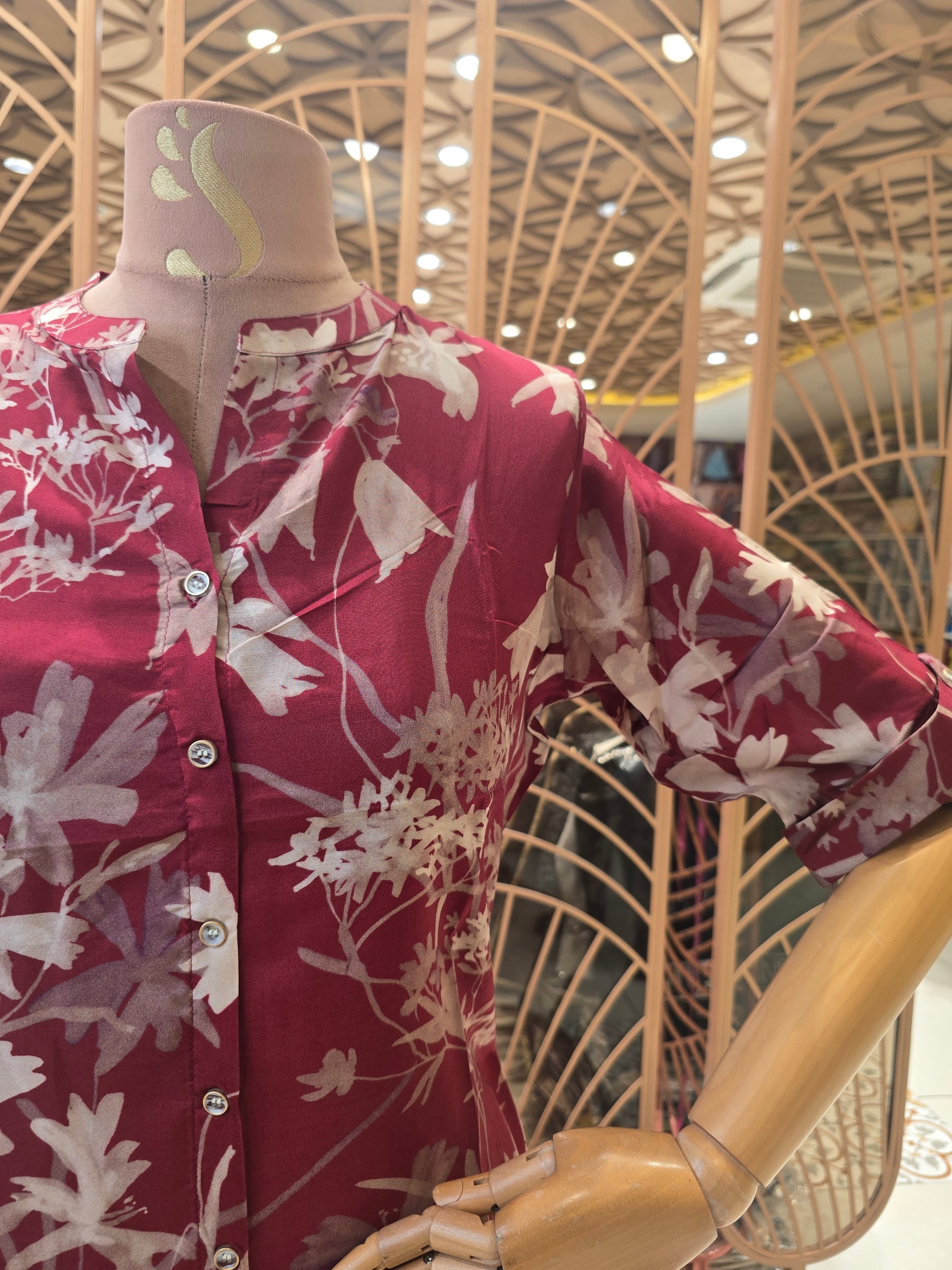 This women’s rayon kurta in a rich maroon shade is designed for effortless everyday elegance and all-day comfort. Crafted from soft and breathable rayon fabric, the straight-cut kurta features graceful floral prints that add a fresh and feminine touch, while the collar neck with button detailing enhances its smart, contemporary appeal. Styled with comfortable ¾th sleeves, this kurta is ideal for normal wear, office use, casual outings, and daily activities, offering a perfect balance of comfort, simplicity, and timeless printed style.